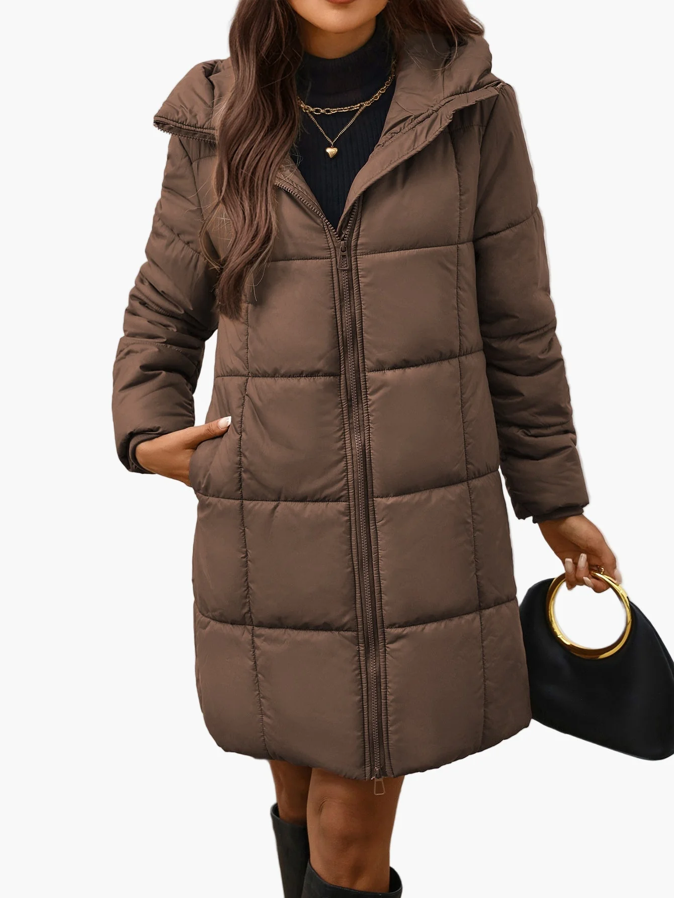 Manteau doudoune mi-longue femme style urbain pour l’hiver