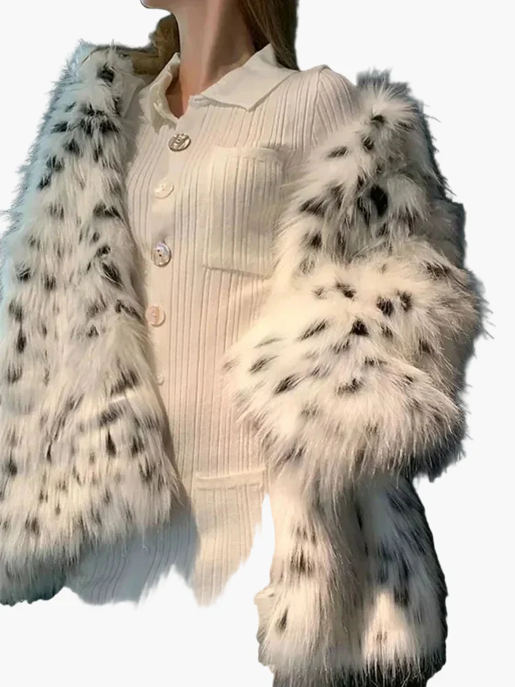 Manteau élégant style pelage à motifs tachetés pour femme – Luxe et chaleur pour l’hiver