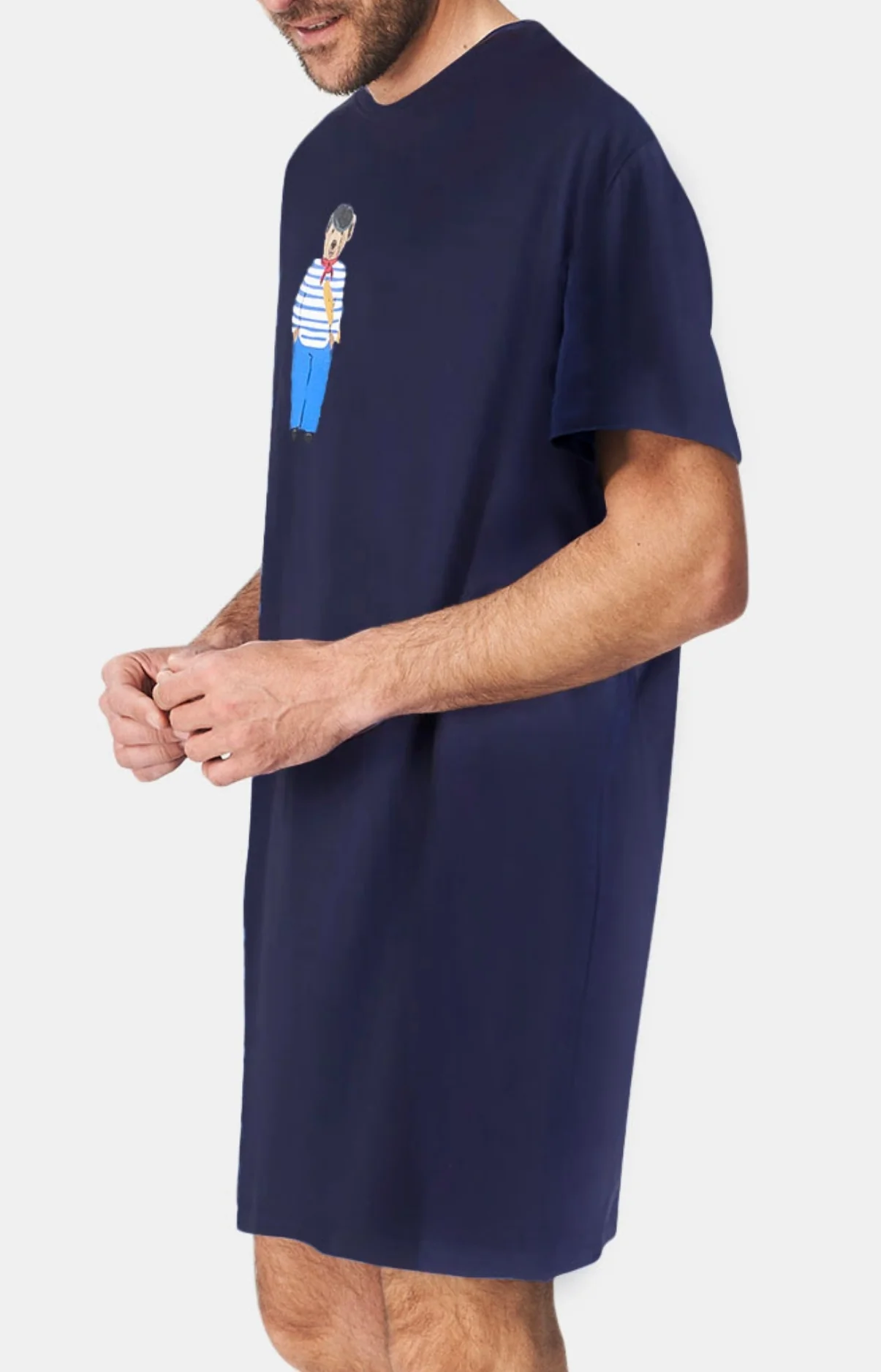 Fantaisie et coton léger pour aller se coucher sans laisser son second degré de côté ! – Chemise de nuit Homme – 100% coton issu de l’agriculture biologique – Manches courtes & col rond – Taille unique – Sérigraphie poitrine – Motif créé à Paris – Confectionné dans nos ateliers partenaires en Inde