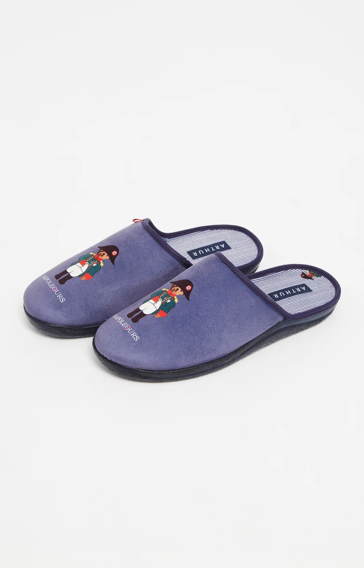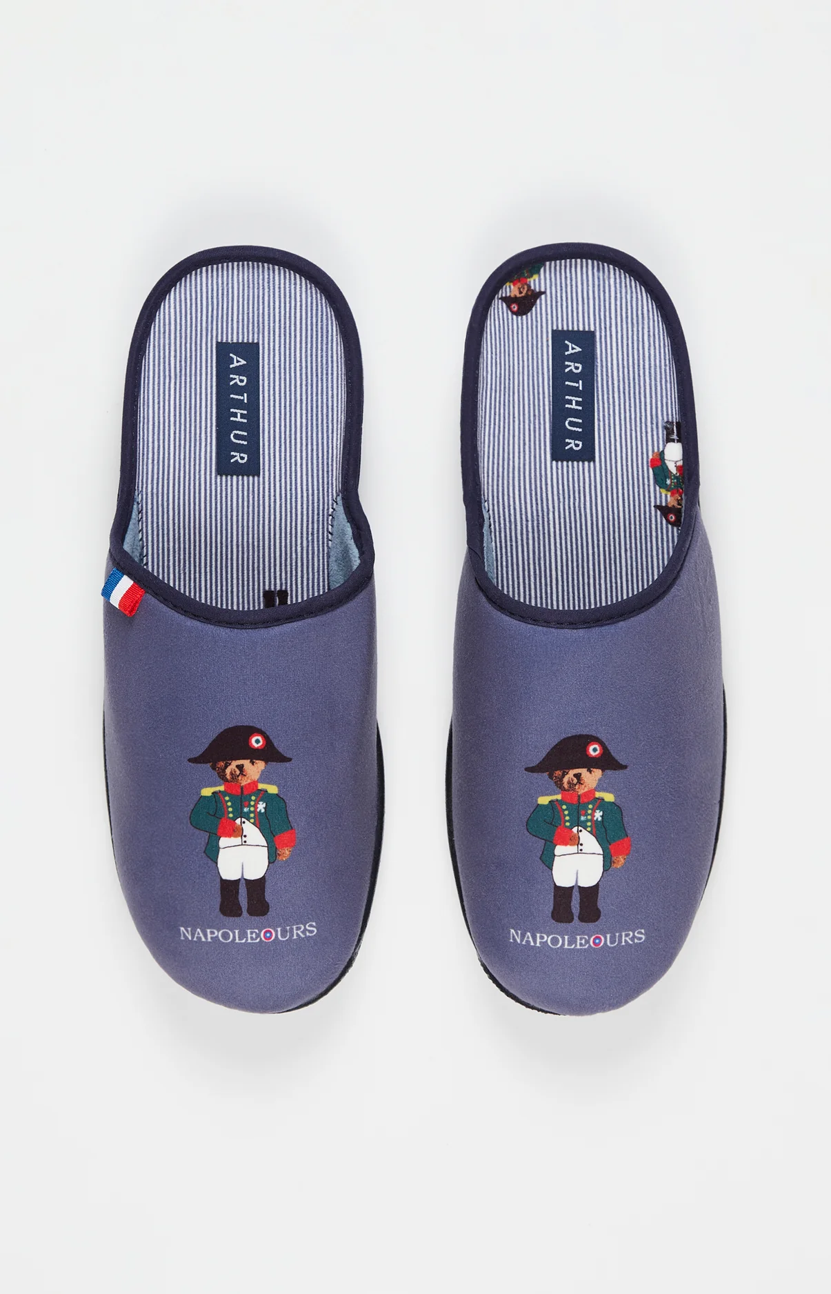 Cet hiver, soyez « Napoléours » jusqu’au bout des orteils ! Ces chaussons homme au dessus en jersey et à la sérigraphie unique, originale et décalée possèdent une semelle à mémoire de forme qui feront passer des moments de bonheur à vos gambettes.