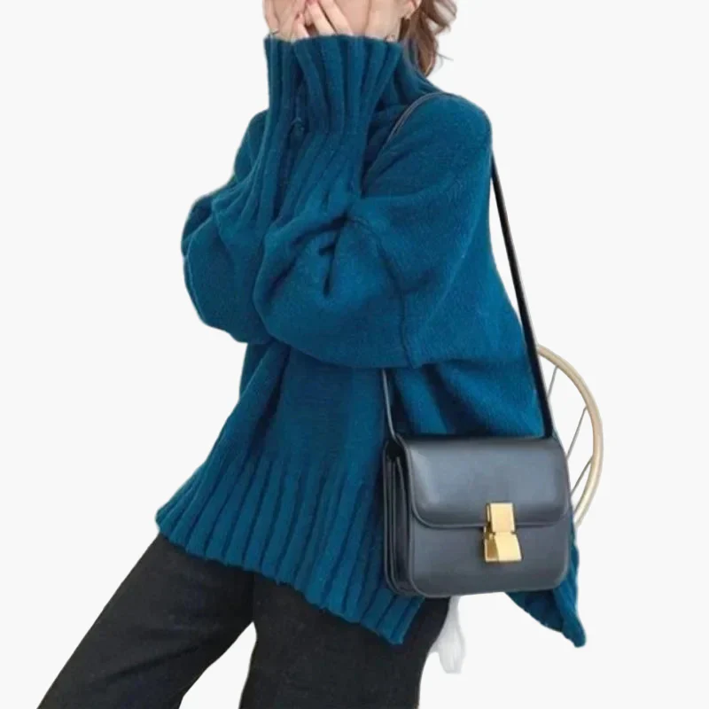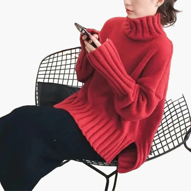 Pull oversize col montant style coréen pour femme – Idéal automne hiver, chic et décontracté