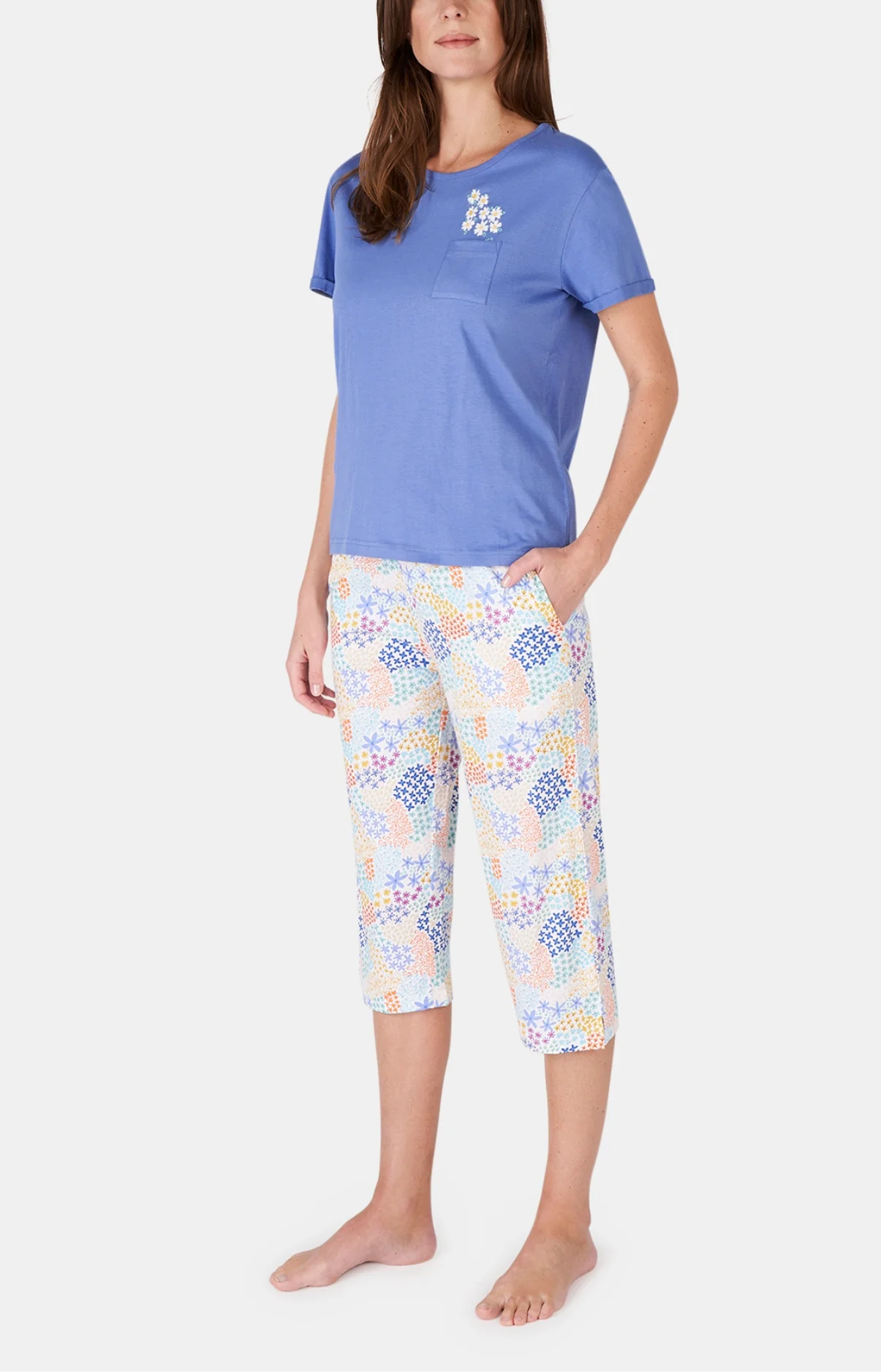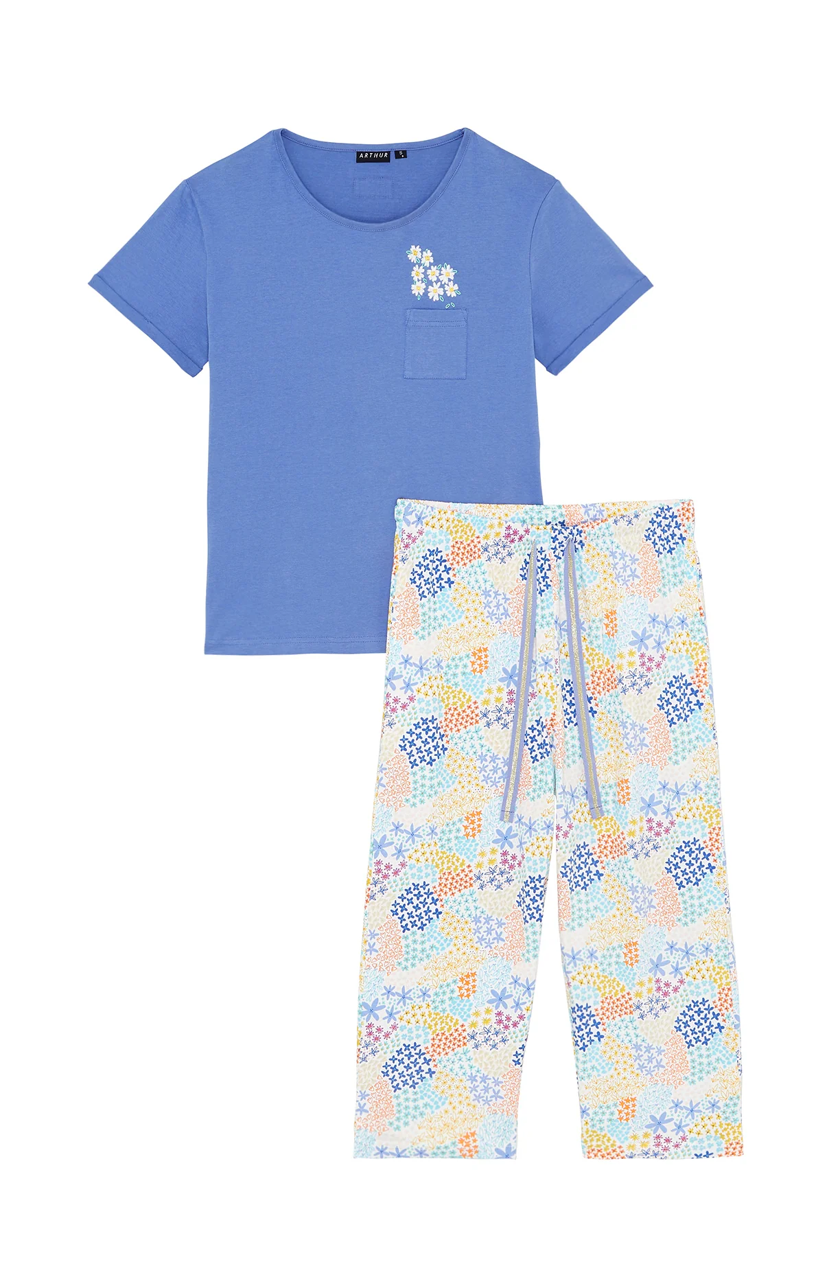 – Ensemble de pyjama femme – 100% coton issu de l’agriculture biologique – Tee-shirt manches courtes et col rond – Poche poitrine, broderie fleurie – Pantalon mi-long petites fentes cotés – Bas de pyjama avec ceinture élastiquée et cordon de serrage – 2 poches côtés – Motif exclusif créé à Paris – Confectionné dans nos […]