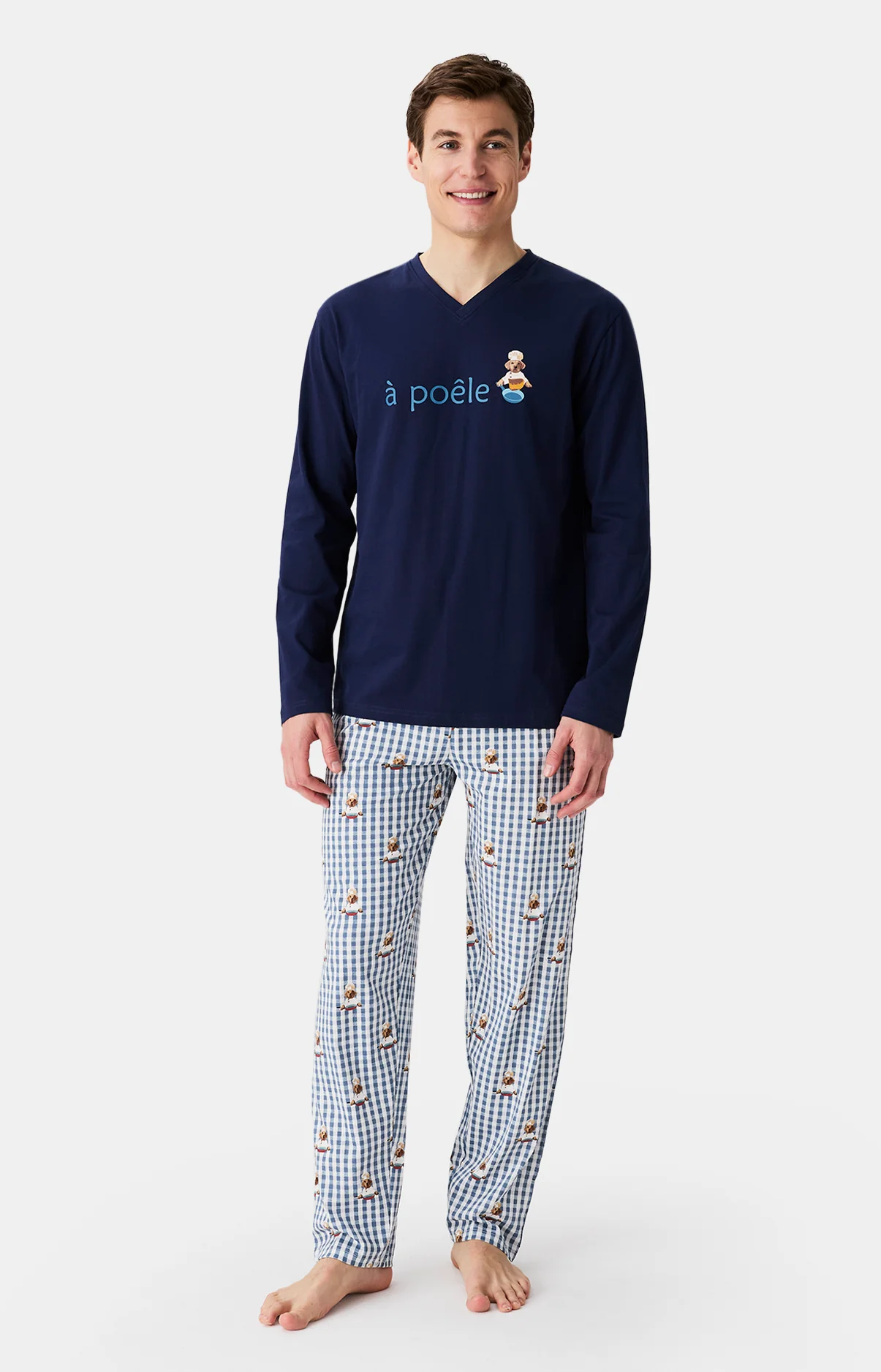 Fantaisie et coton léger pour aller se coucher sans laisser son second degré de côté ! – Ensemble de Pyjama Homme – 100% coton issu de l’agriculture biologique – Tee-shirt uni col V, manches longues – Sérigraphie poitrine – Pantalon de pyjama en jersey de coton avec ceinture élastiquée, cordon de serrage et 2 poches […]