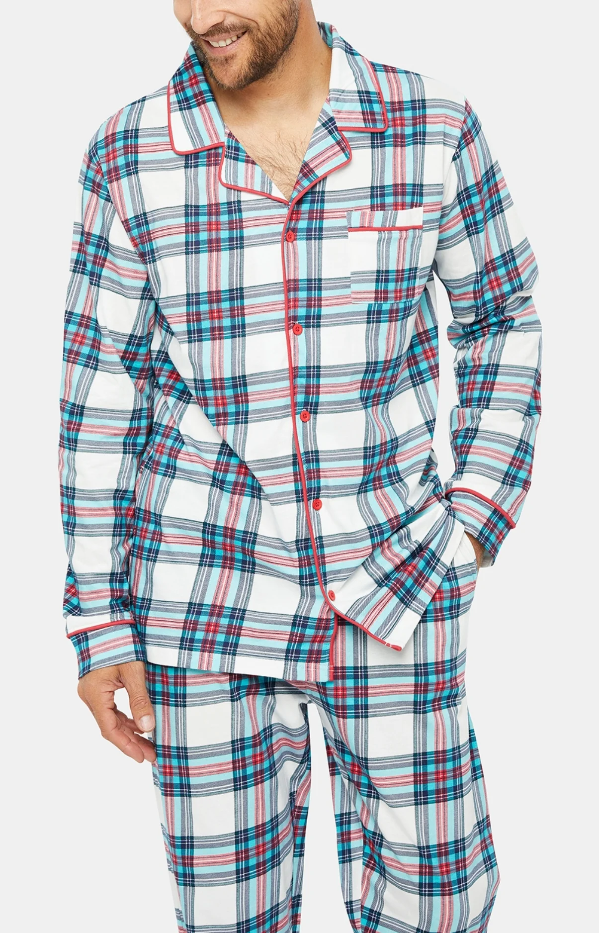– Pyjama homme chemise boutonné, col tailleur, manches longues, 2 poches plaquées