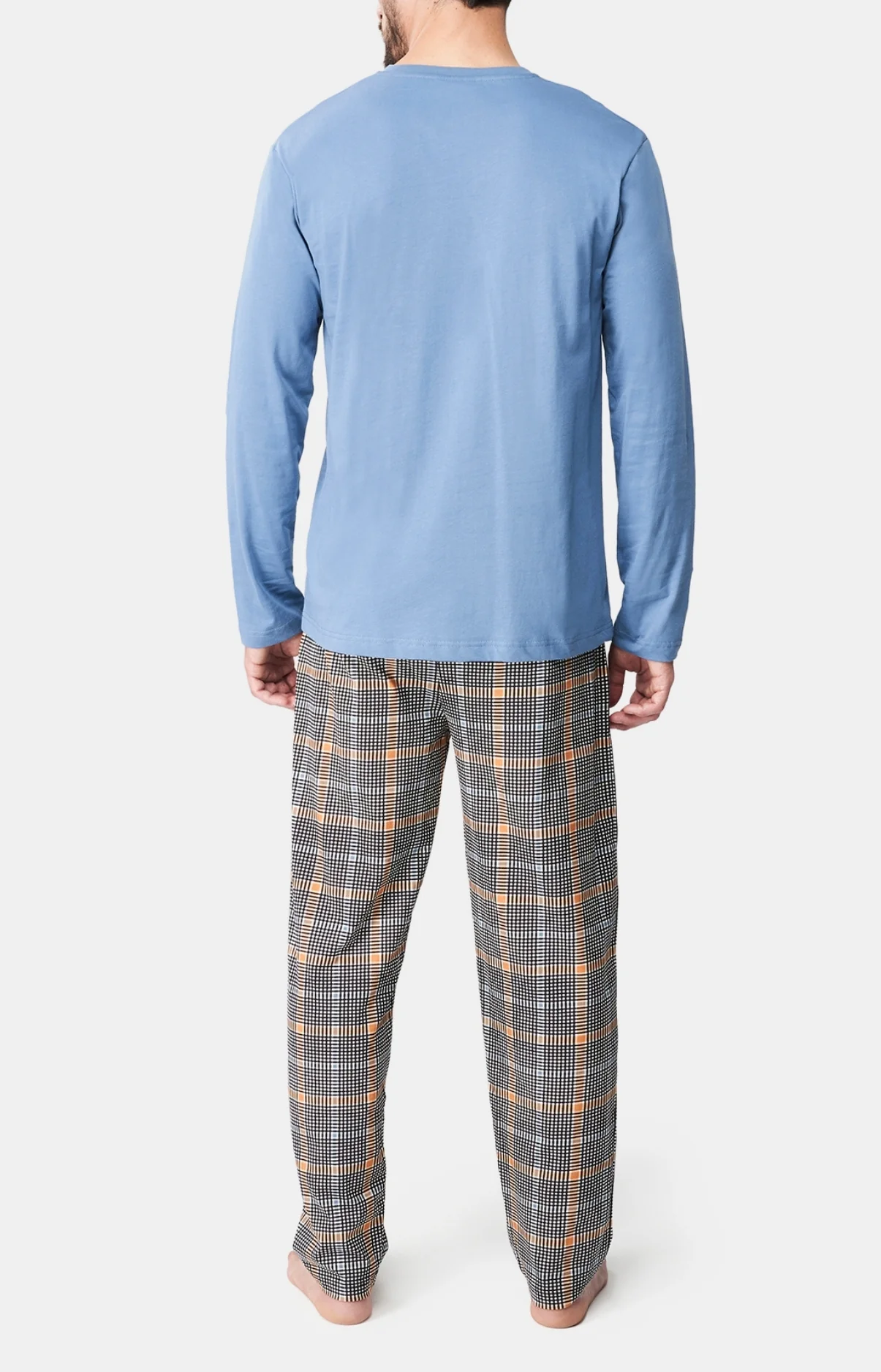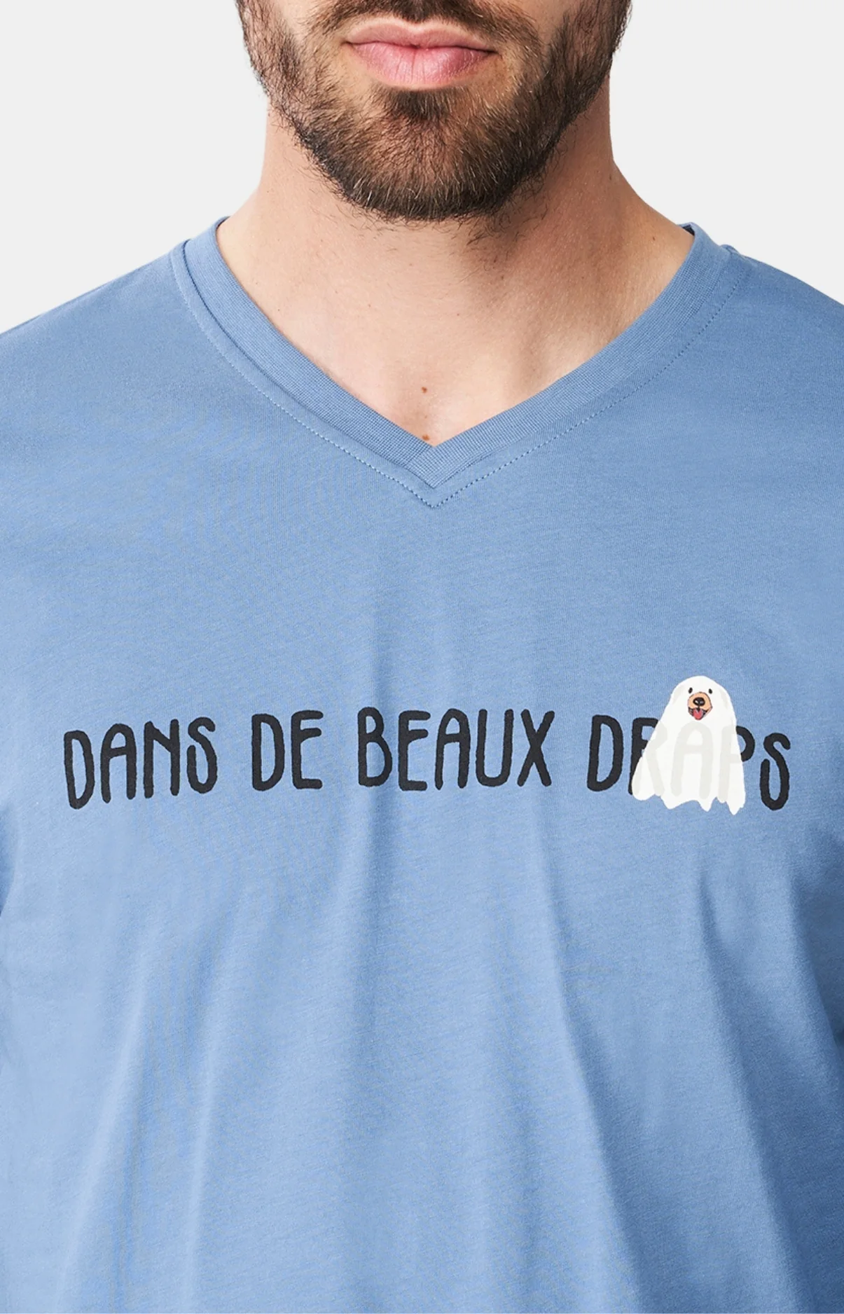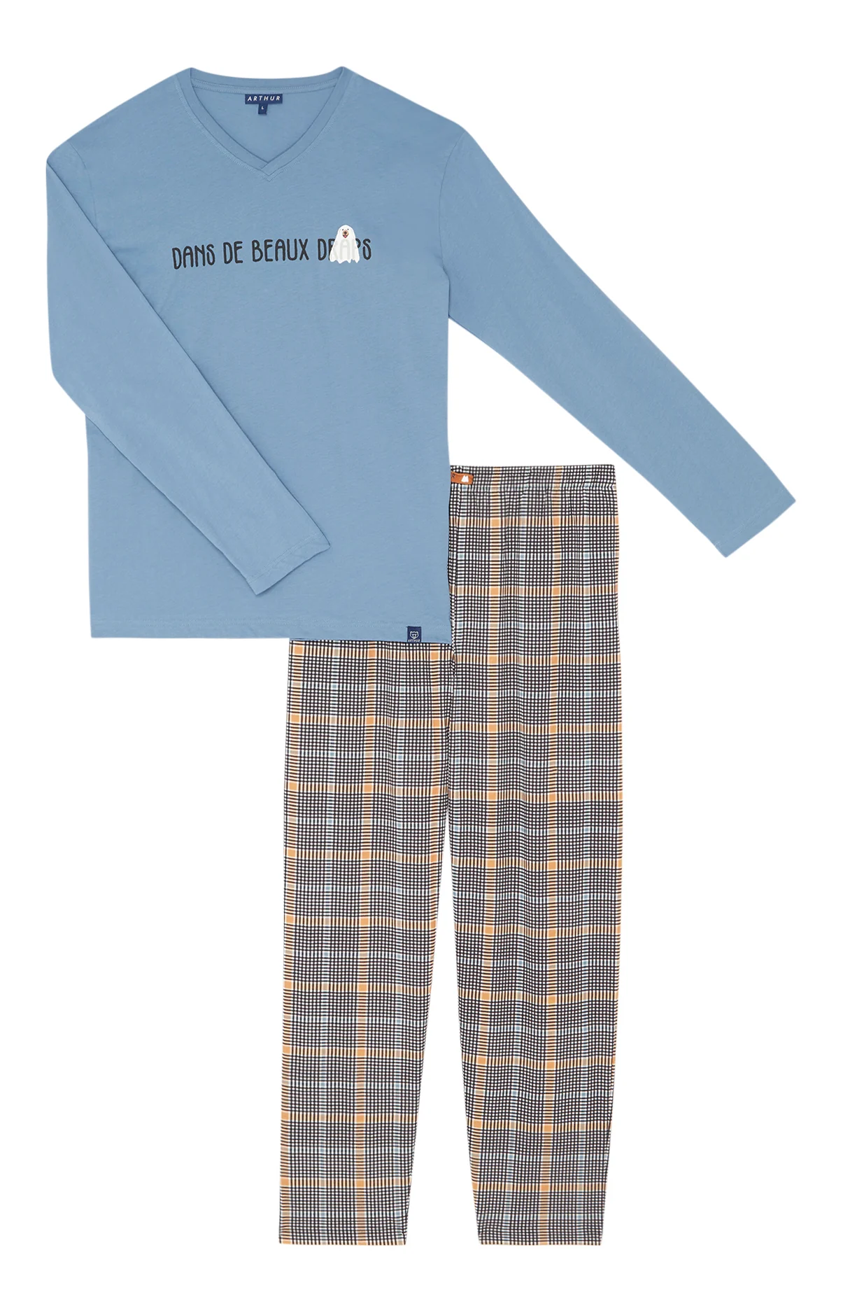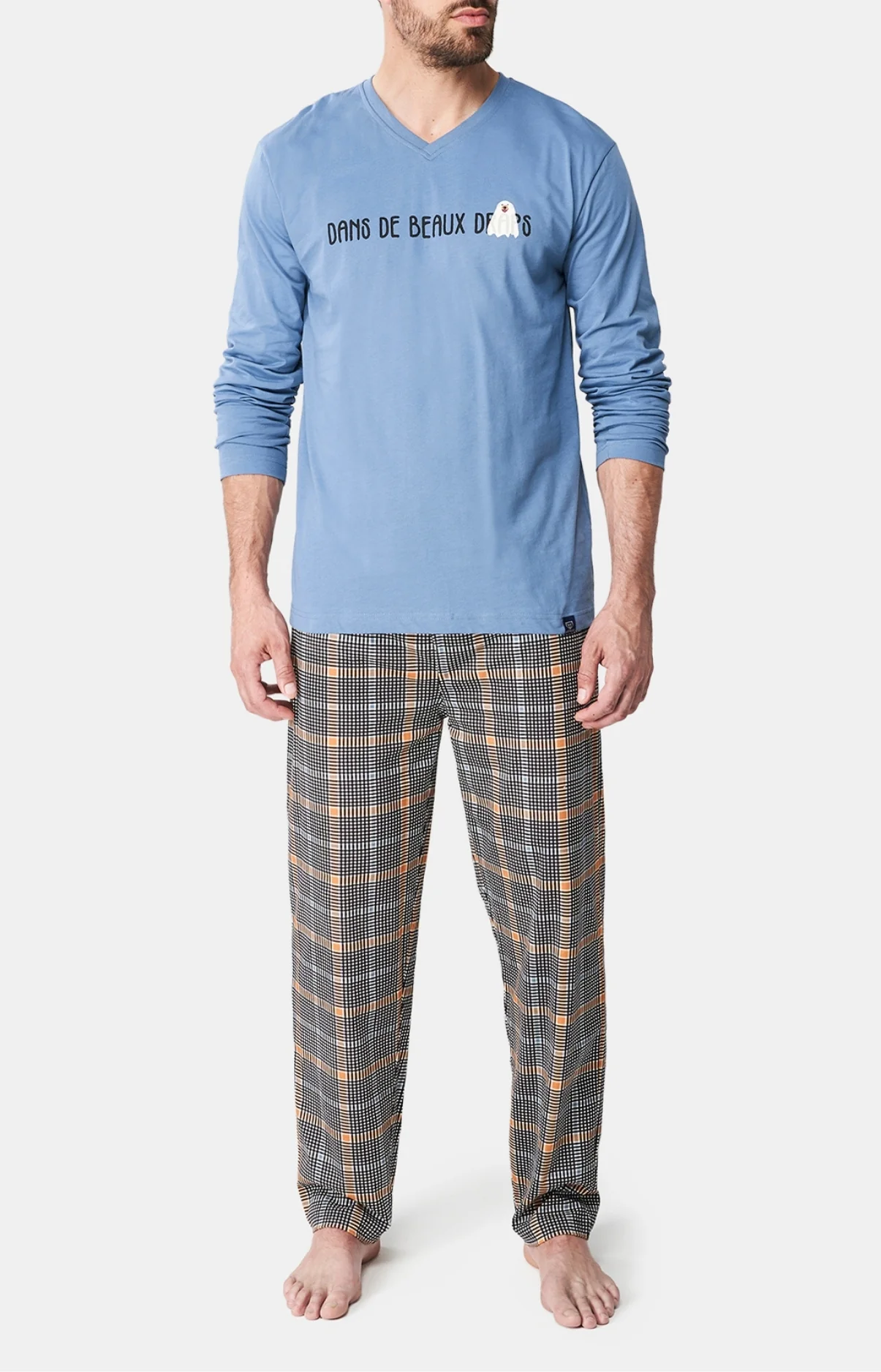 Fantaisie et coton léger pour aller se coucher sans laisser son second degré de côté ! – Ensemble de pyjama homme – 100% coton issu de l’agriculture biologique – Tee-shirt uni col V, manches longues – Sérigraphie poitrine – Pantalon de pyjama en jersey de coton avec ceinture élastiquée, cordon de serrage et 2 poches […]