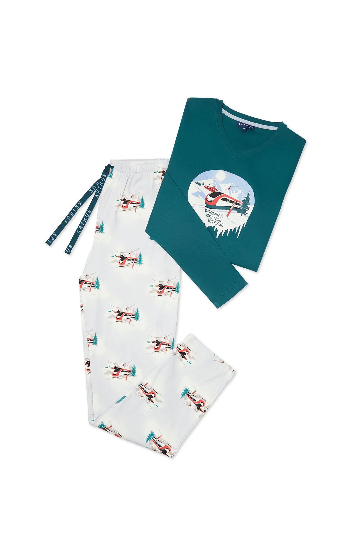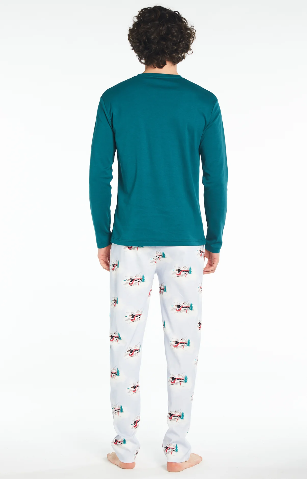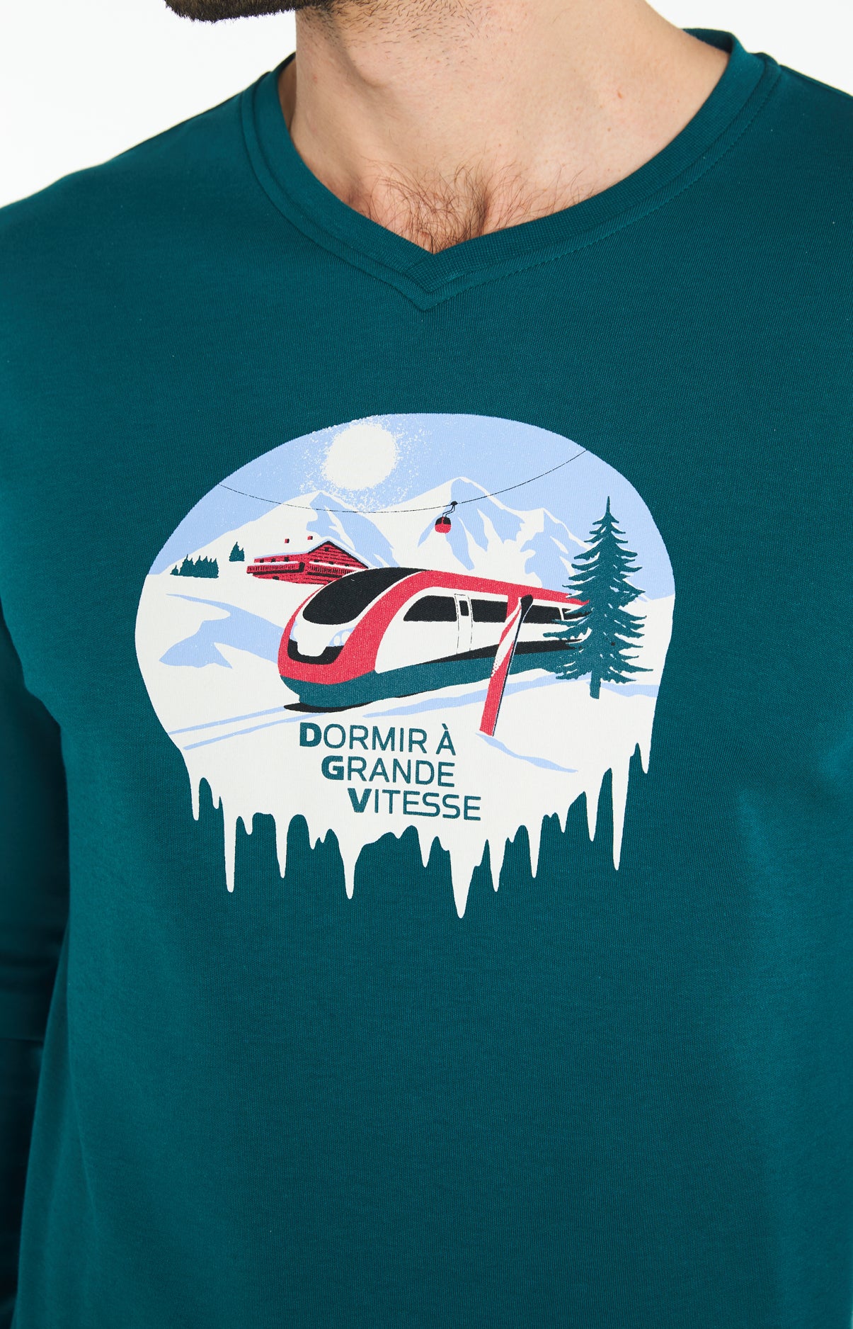 Avec sa coupe longue et son motif hivernal à souhait, ce pyjama long homme vous permettra de sortir du train-train habituel du homewear nocturne, pour foncer à grande vitesse vers la gare de l’Originalité Rêvée. En coton interlock en couleurs contrastantes et neigeuses, ce modèle chaud et tendance vous mettra plus vite que vous ne le pensez sur les rails de nuits parfaites, toujours en première classe du style !