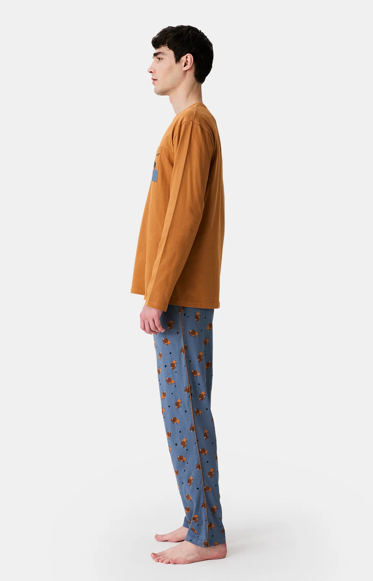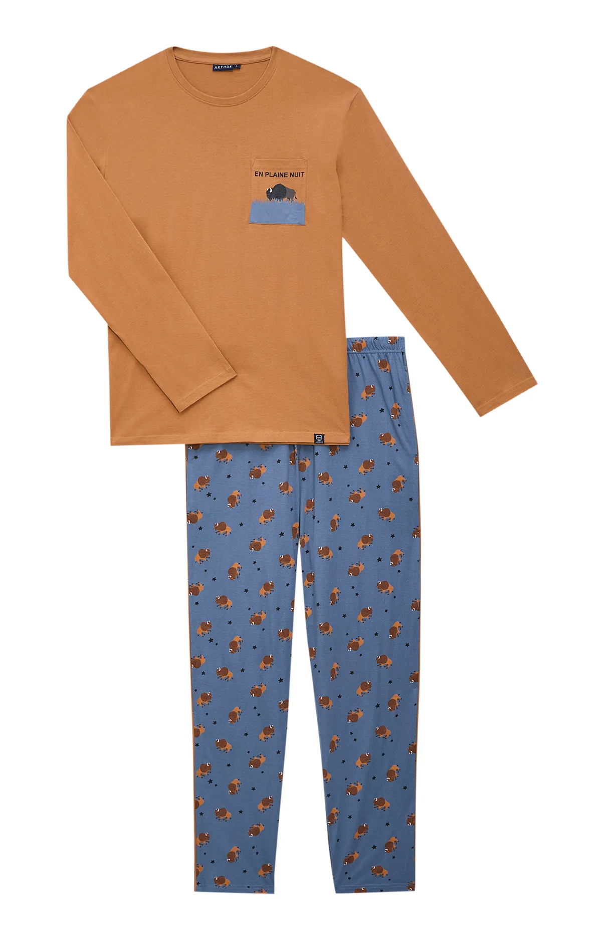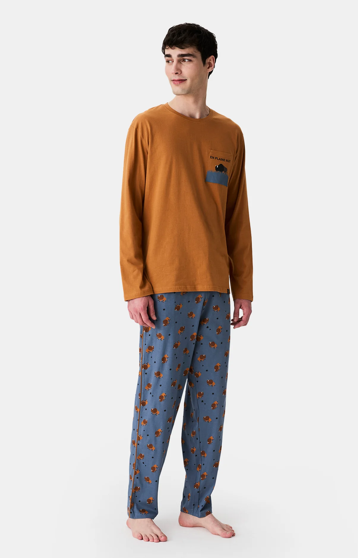 Fantaisie et coton léger pour aller se coucher sans laisser son second degré de côté ! – Ensemble de Pyjama Homme – 100% coton issu de l’agriculture biologique – Tee-shirt uni col rond, manches longues – Poche et sérigraphie poitrine – Pantalon de pyjama en jersey de coton avec ceinture élastiquée, cordon de serrage et […]