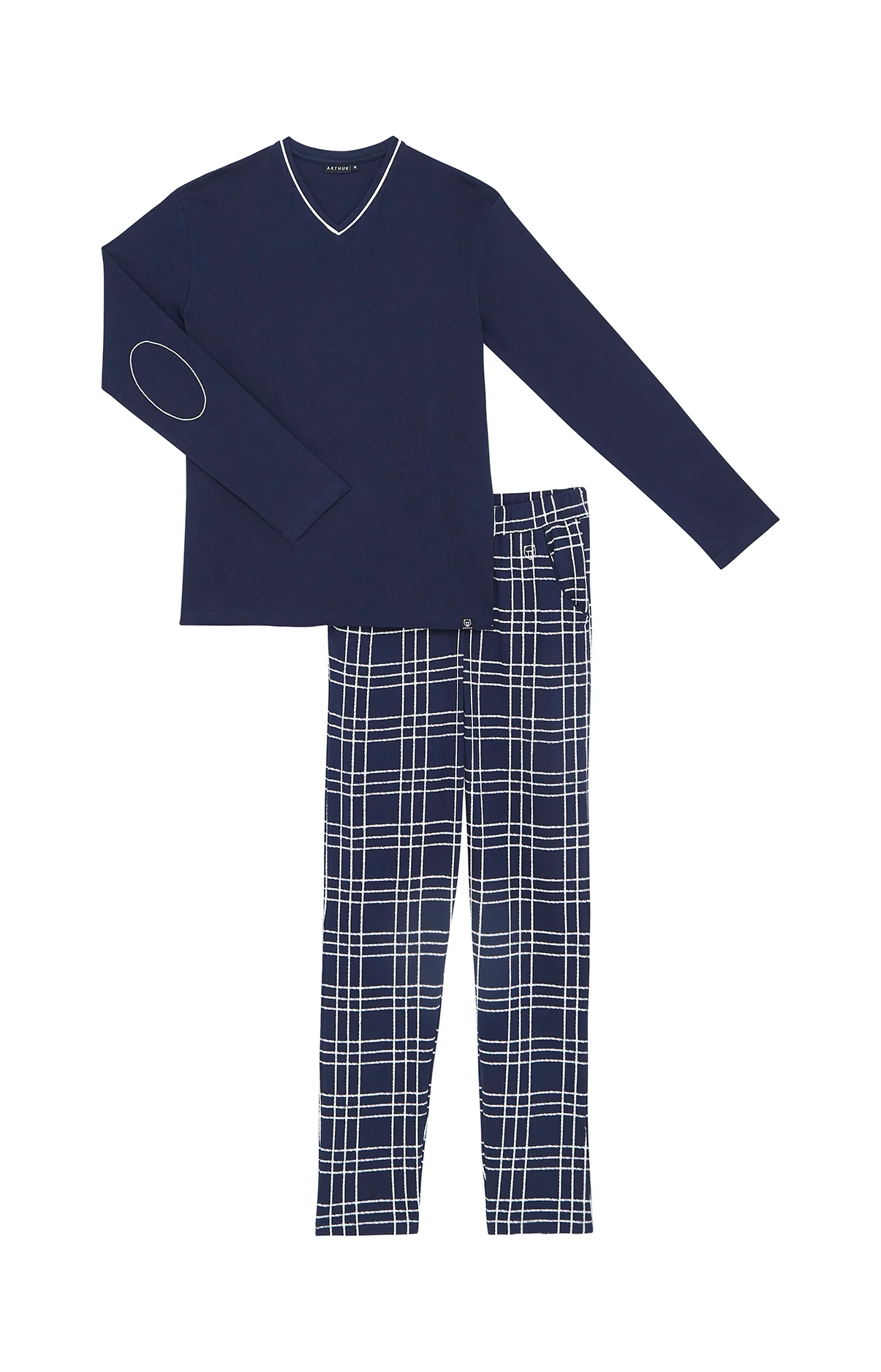 – Ensemble de pyjama Homme – 100% coton interlock issu de l’agriculture biologique – Tee-shirt uni col V, manches longues– Pantalon de pyjama avec ceinture élastiquée, cordon de serrage et 2 poches côtés – Existe en pyjashort– Motif exclusif créé à Paris – Confectionné dans nos ateliers partenaires en Inde