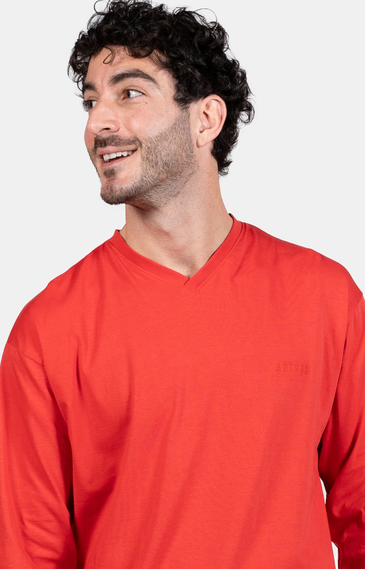 – Tee-shirt uni manches longues, col V