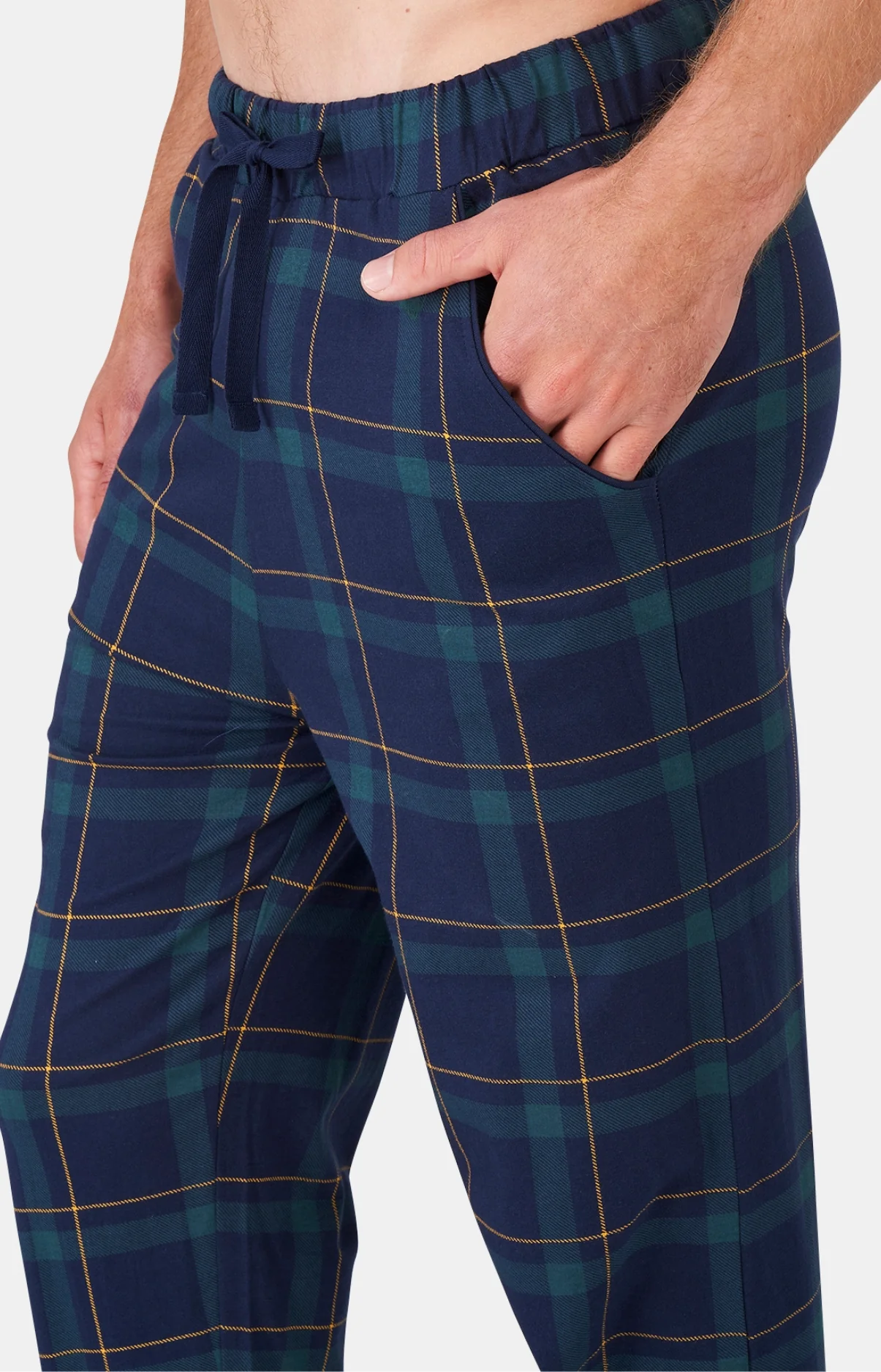 – Pantalon de pyjama avec ceinture élastiquée, cordon de serrage et 2 poches côtés en bleu marine