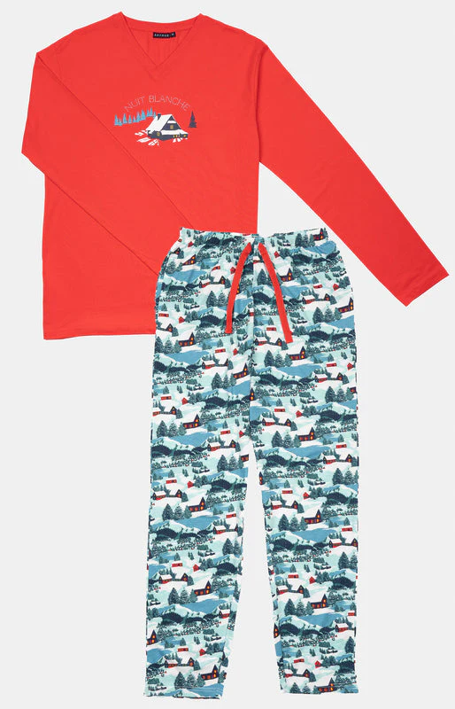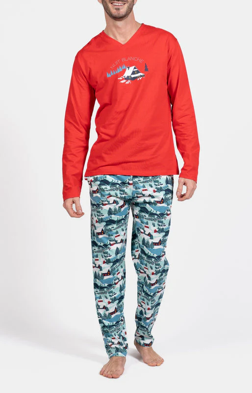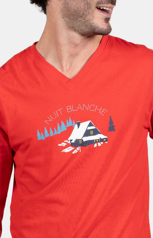 – Ensemble de Pyjama Homme – 100% coton – Tee-shirt uni col V, manches longues – Sérigraphie poitrine – Pantalon de pyjama avec ceinture élastiquée, cordon de serrage et 2 poches côtés – Motif exclusif créé à Paris – Confectionné dans nos ateliers partenaires en Inde