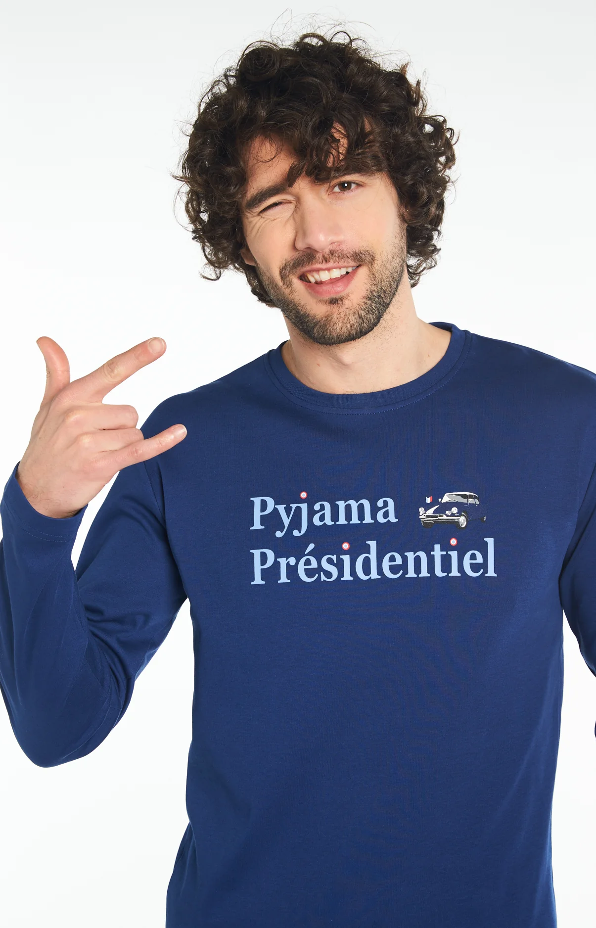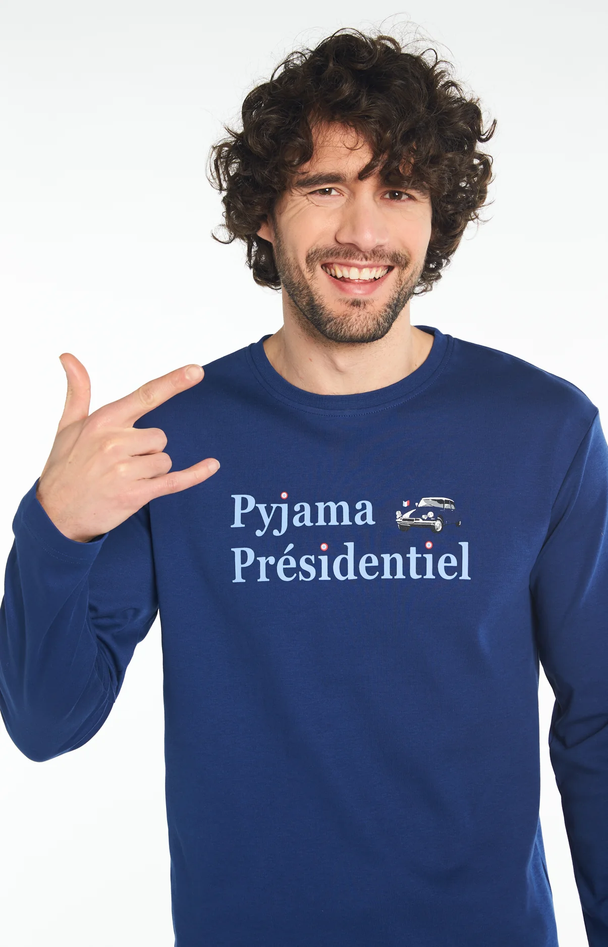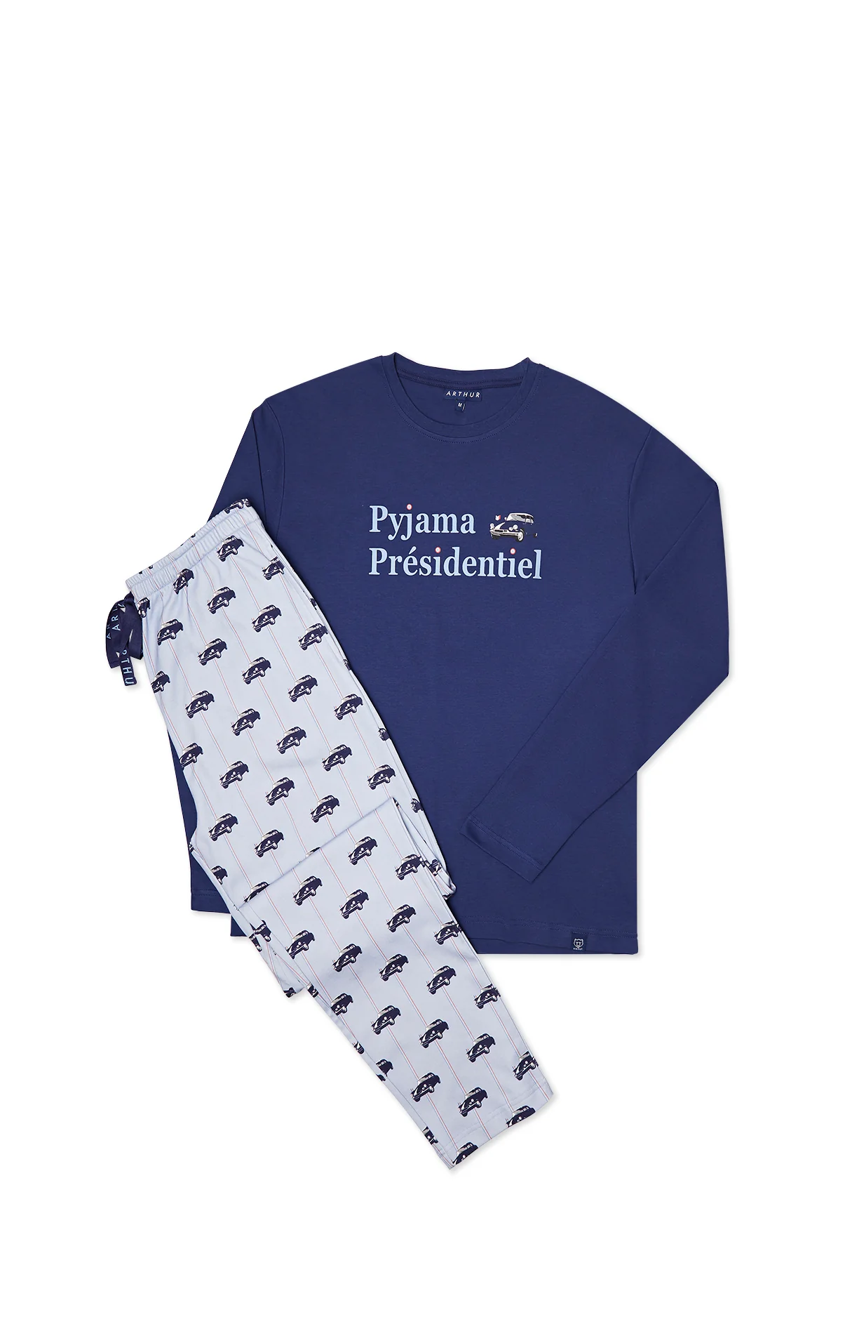 A quelques mois des prochaines élections présidentielles, vantez avec fantaisie et humour votre passion pour l’histoire politique de notre pays, avec un coton issu de l’agriculture biologique interlock qui fera consensus. Ce pyjama long homme et se ceinture élastiquée réglable serait à merveille les épaules de l’hôte de l’Élysée, et vous amènera, toutes vitres fumées, vers la première place de l’élection du président du style « so French », aussi bien au lit que lors de vous journées de détente hivernales !