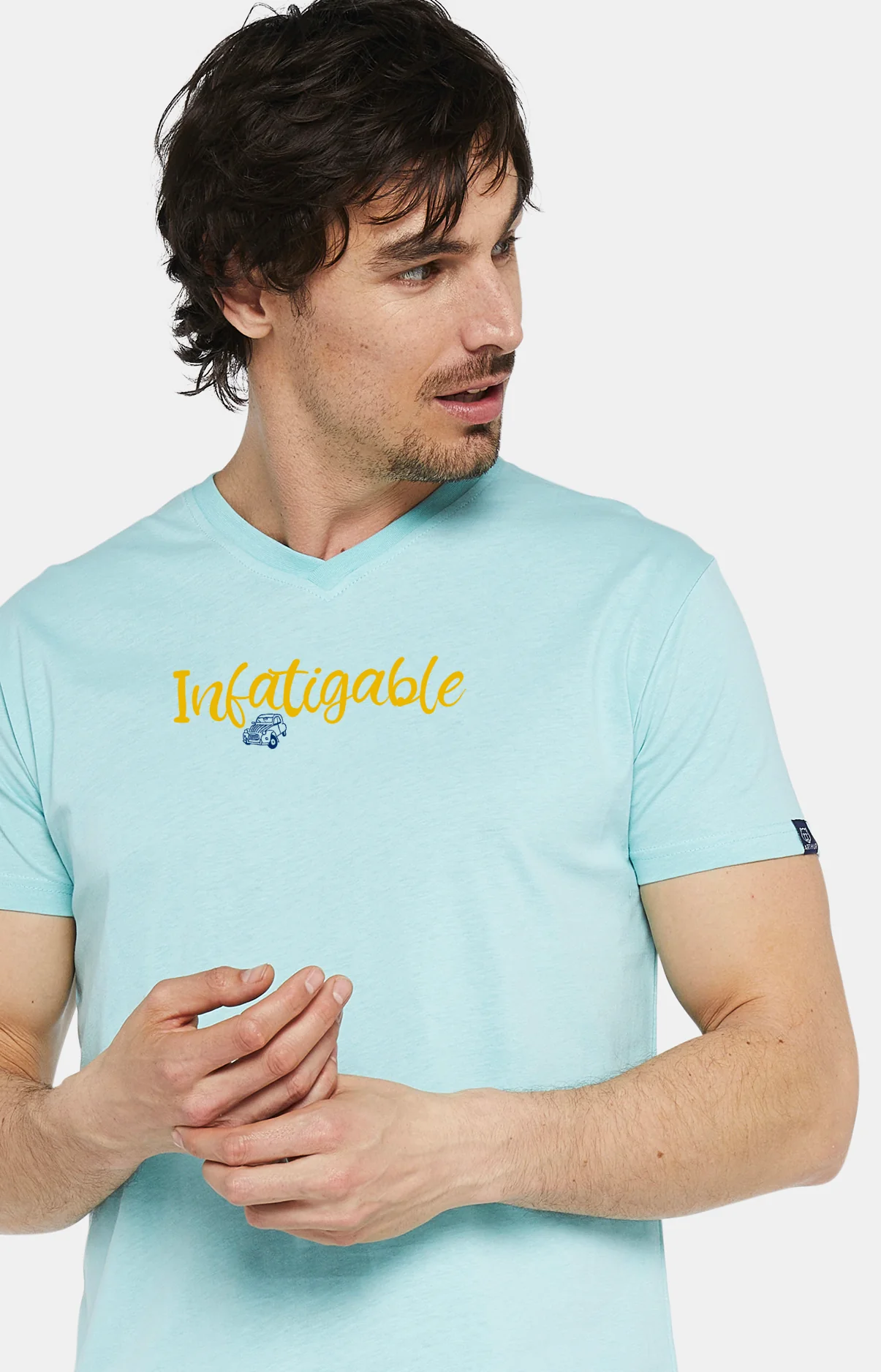 – Tee-shirt uni, manches courtes et col V