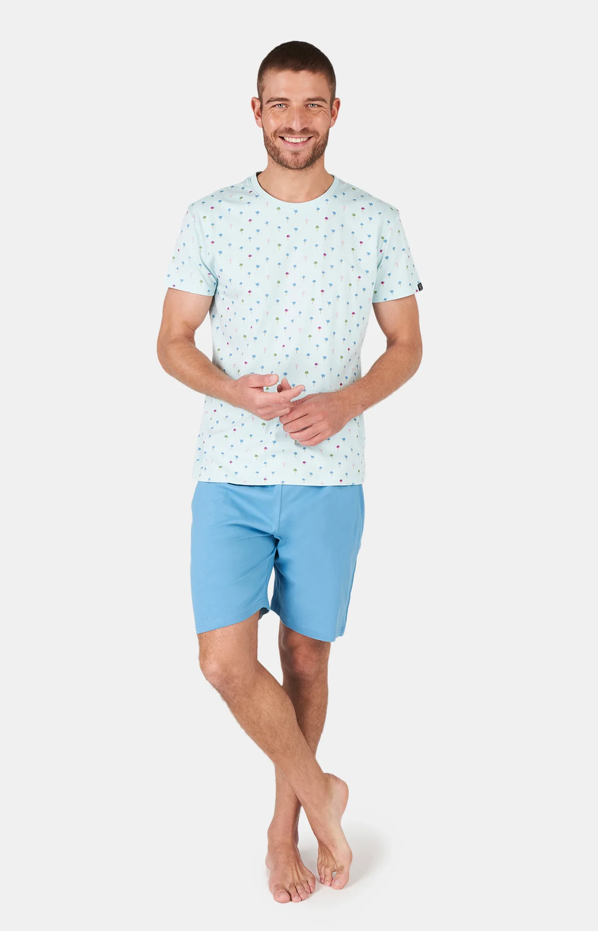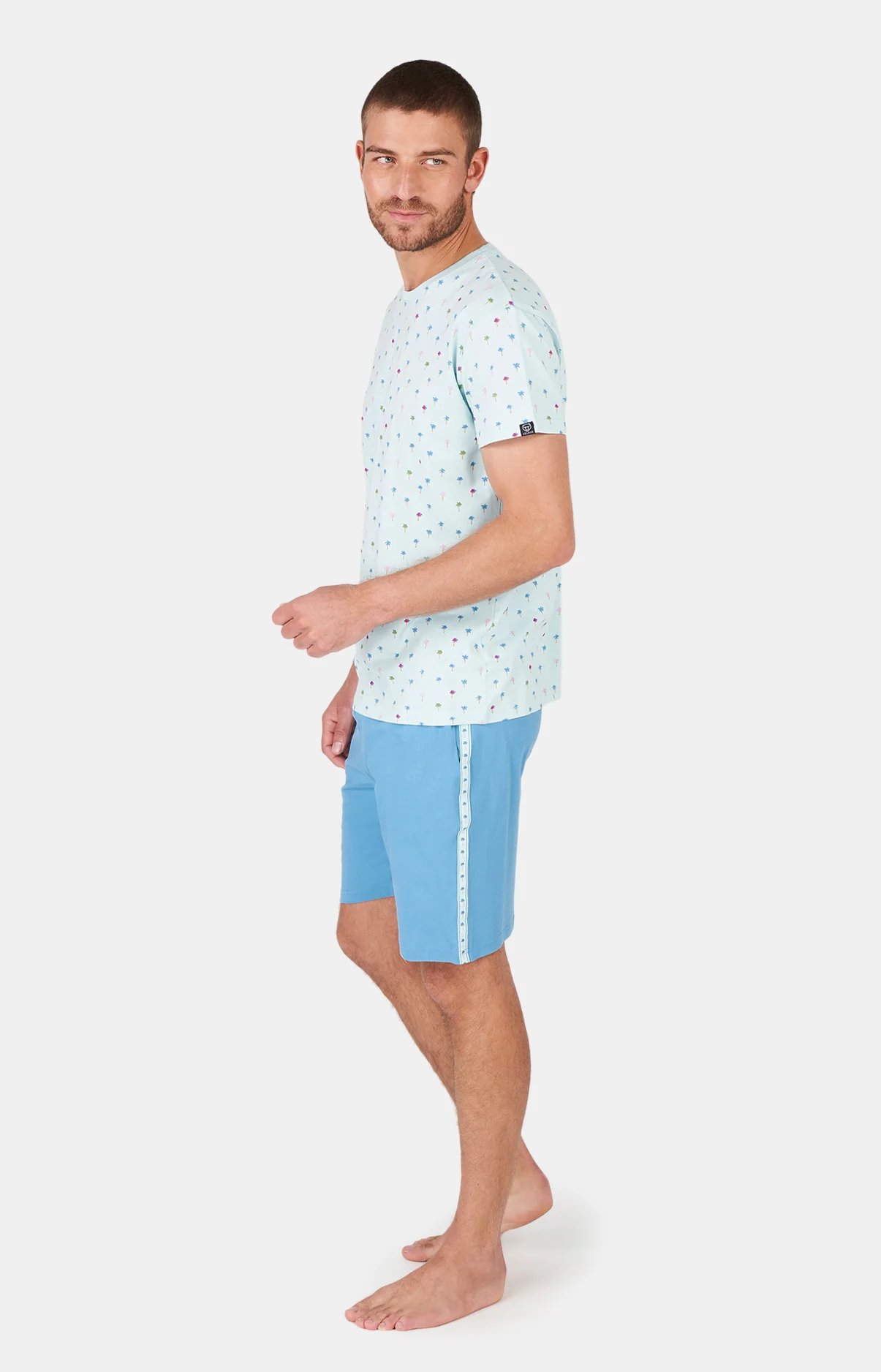 – Ensemble de pyjama Homme – 100% coton issu de l’agriculture biologique – Tee-shirt uni, manches courtes et col rond – Bas de pyjama avec ceinture élastiquée et cordon de serrage – 2 poches côtés – Motif exclusif créé à Paris – Confectionné dans nos ateliers partenaires en Inde