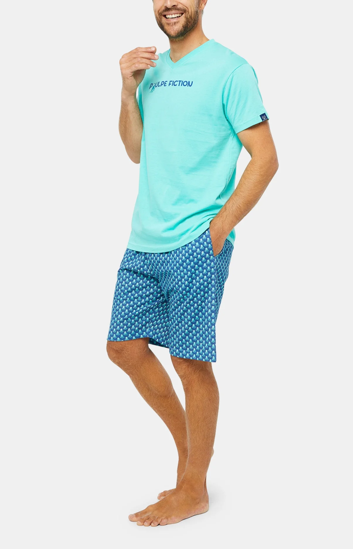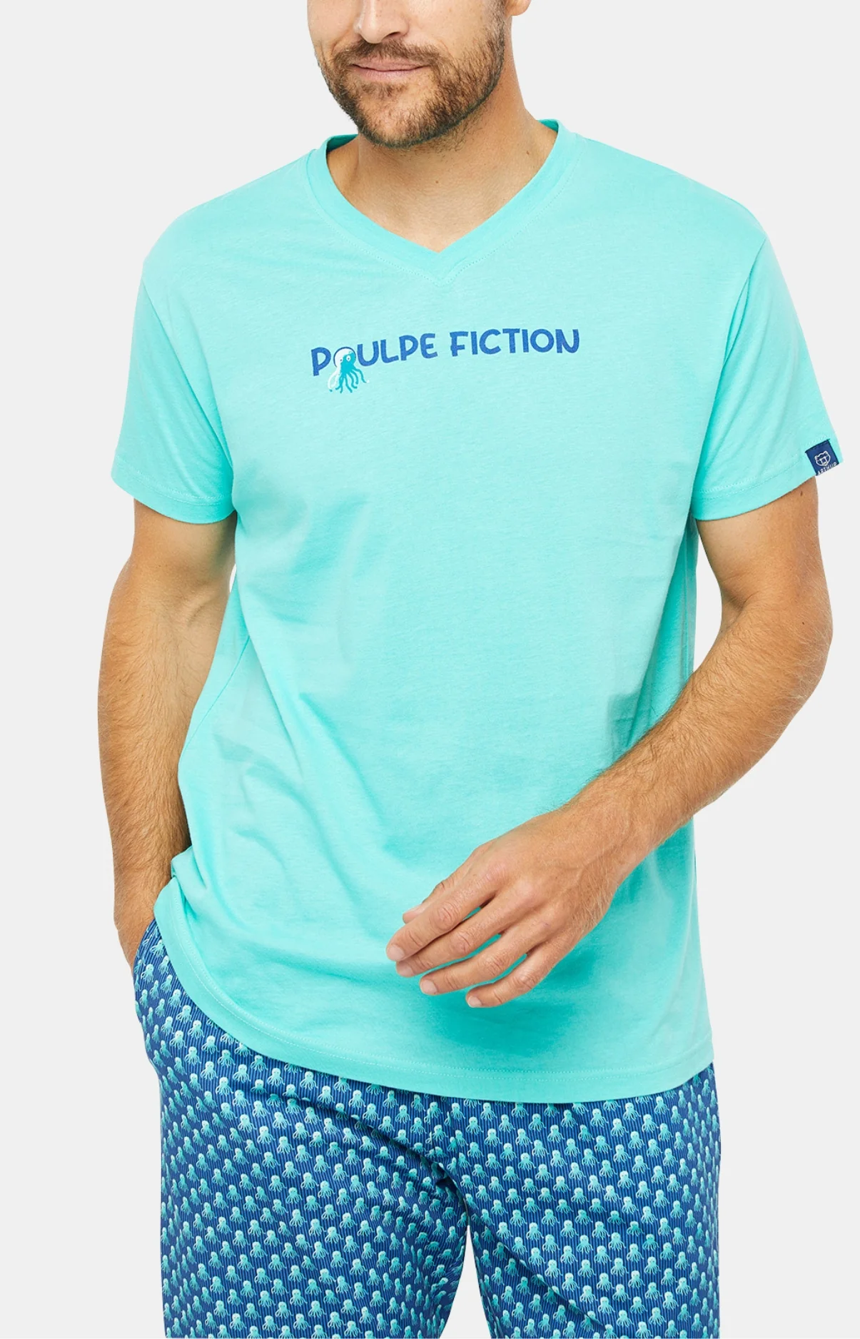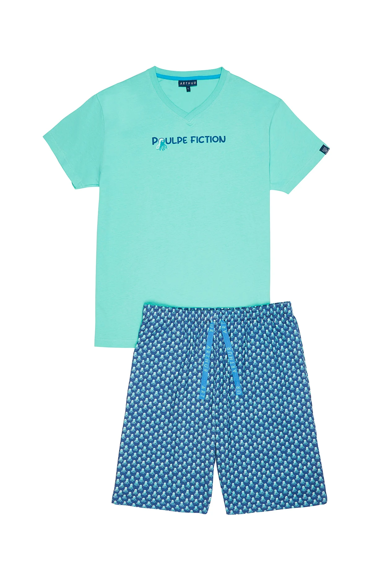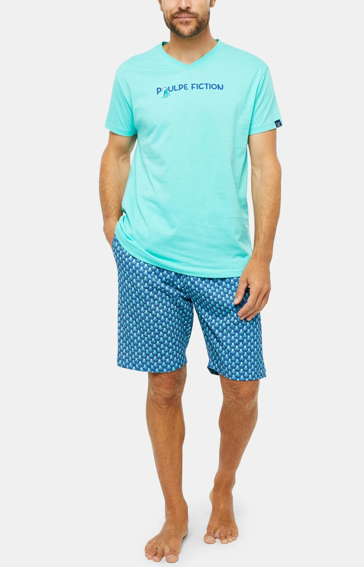 – Ensemble de pyjama Homme – 100% coton issu de l’agriculture biologique – Tee-shirt uni, manches courtes et col V – Sérigraphie poitrine – Bas de pyjama avec ceinture élastiquée et cordon de serrage – 2 poches côtés – Motif exclusif créé à Paris – Confectionné dans nos ateliers partenaires en Turquie