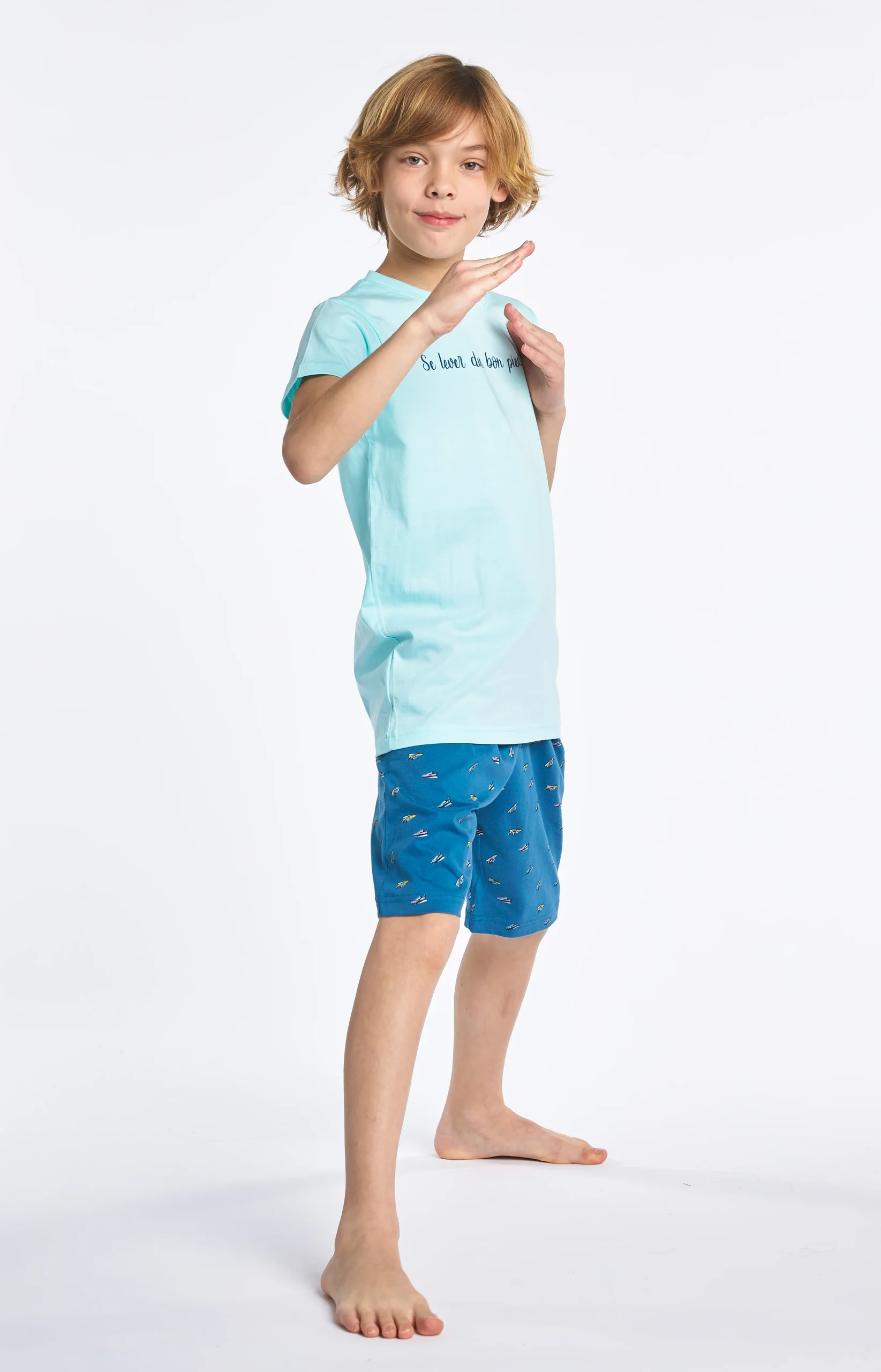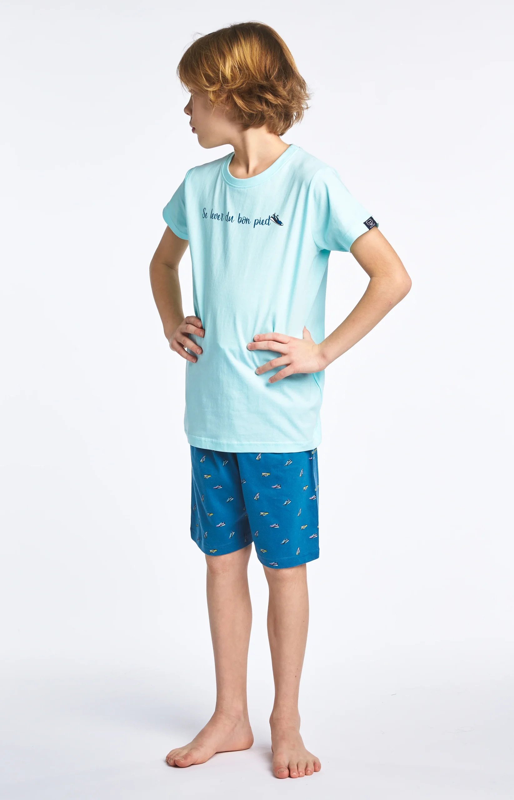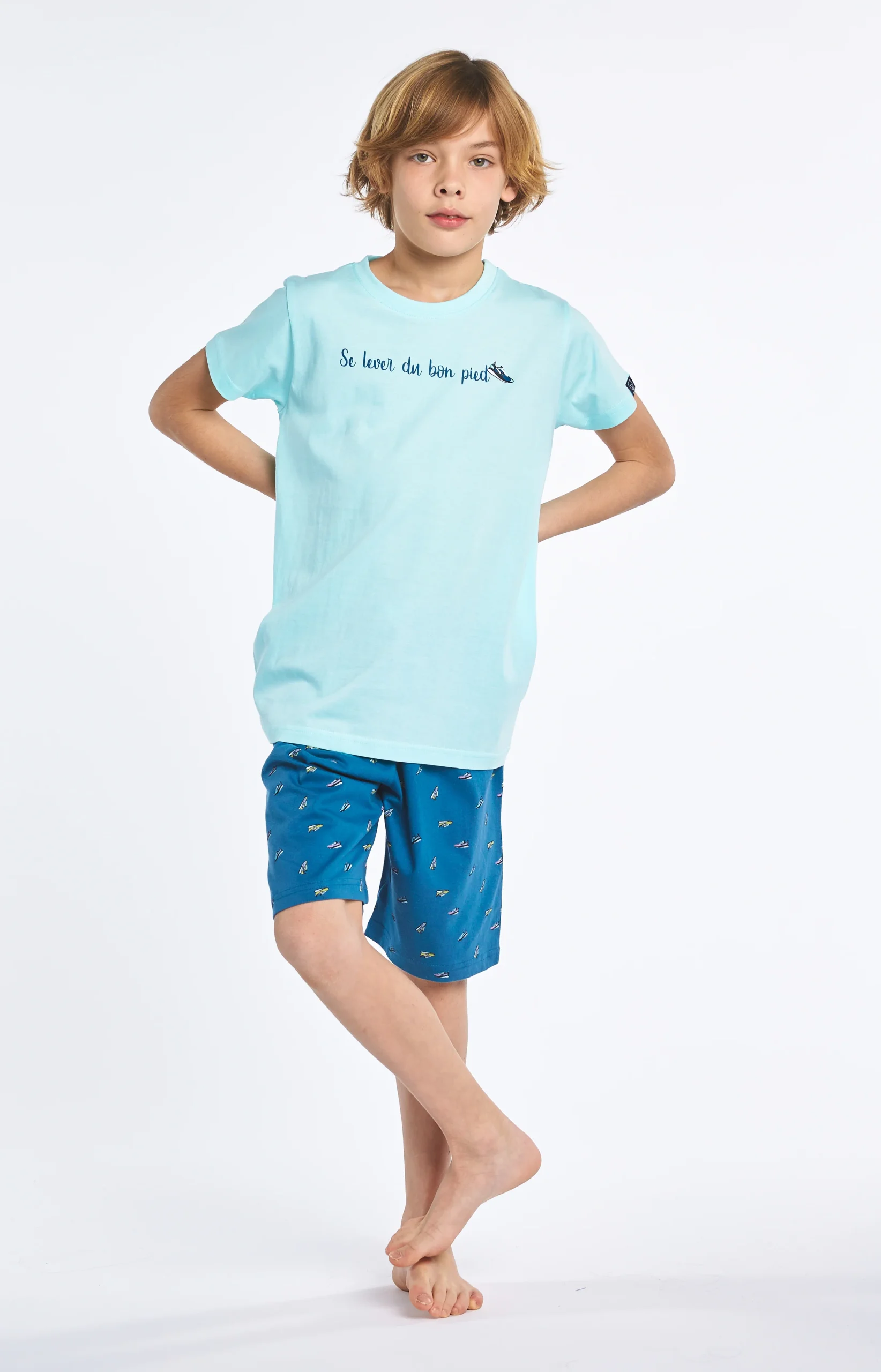 Le style aux pieds et l’énergie en signature, les étés de votre enfant ne sont pas de tout repos. Alors, une fois sous la couette, autant rentabiliser ! Ce pyjama court enfant 100% coton issu de l’agriculture biologique, armé de sa sérigraphie et constellé de ses sneakers imprimées sur le short, lui permettra de se lever du bon pied tous les matins, sans jamais qu’il se sente à l’étroit.