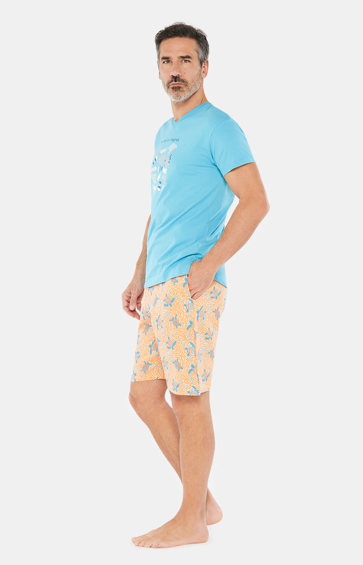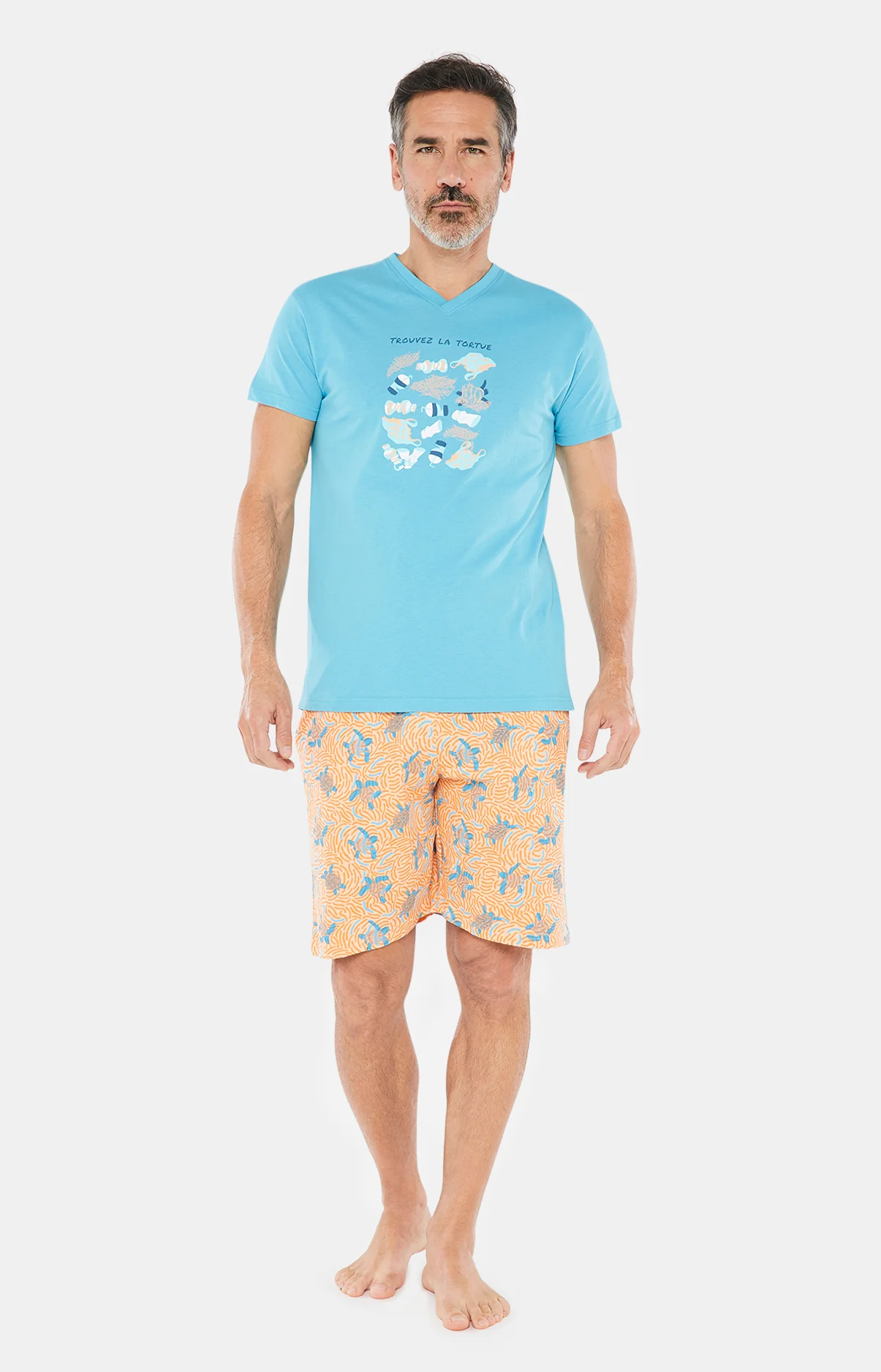 Flânez en toute décontraction avec le Pyjashort Tortue. Optez pour un pyjama 100% coton à porter en toute décontraction.