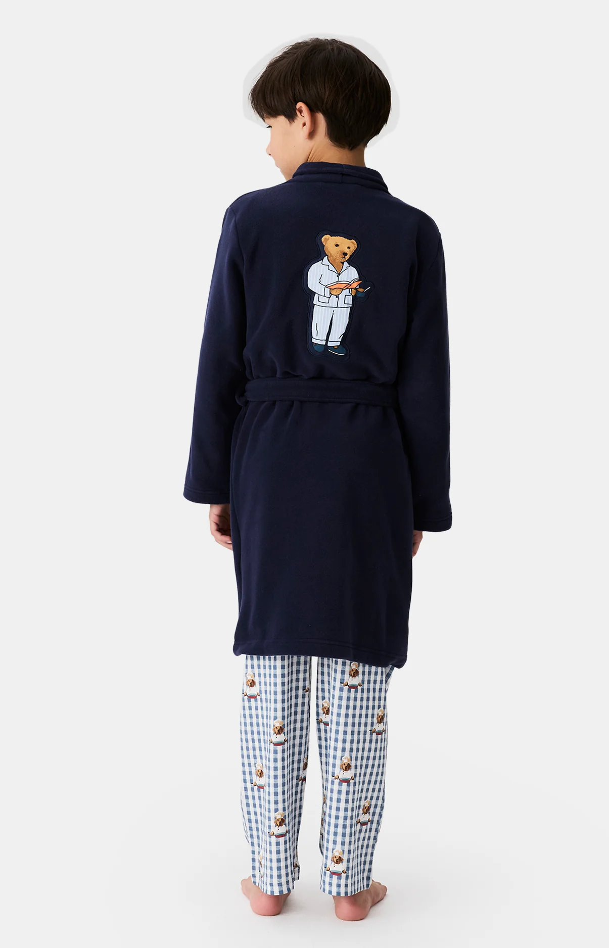 Chaud devant… La robe de chambre la plus chaude de l’hiver – Robe de chambre enfant – Micro-polaire chaude 100% polyester – Forme ceinturée avec 2 poches plaquées – Col châle – Modèle exclusif créé à Paris – Confectionné dans nos ateliers partenaires au Portugal