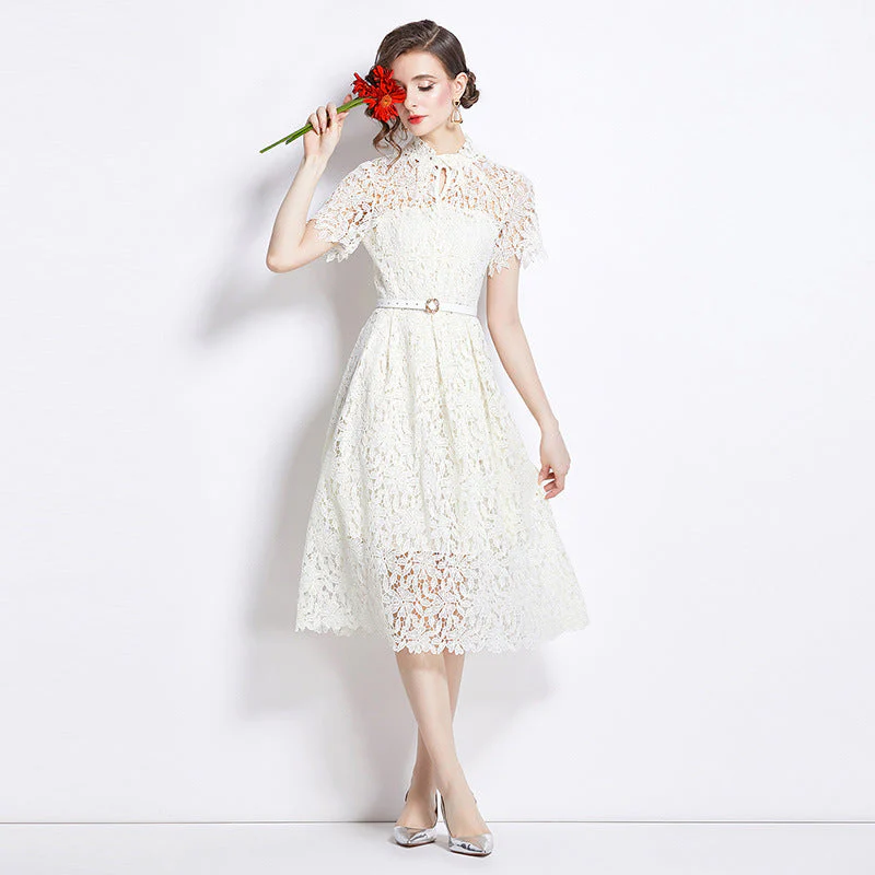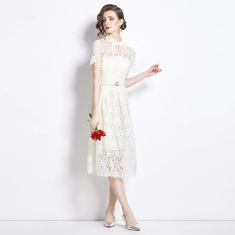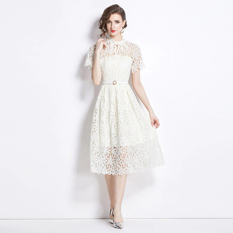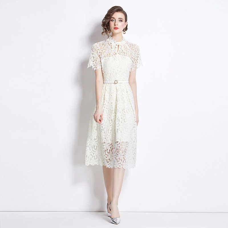 Robe élégante en dentelle mi-longue pour femme – Style soirée et cocktail chic
