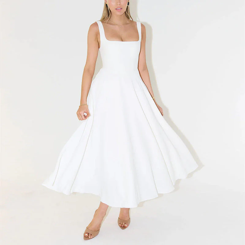 Robe Femme Élégante à Bretelles Style Urbain Chic – Robe Longue Taille Haute Sans Manches