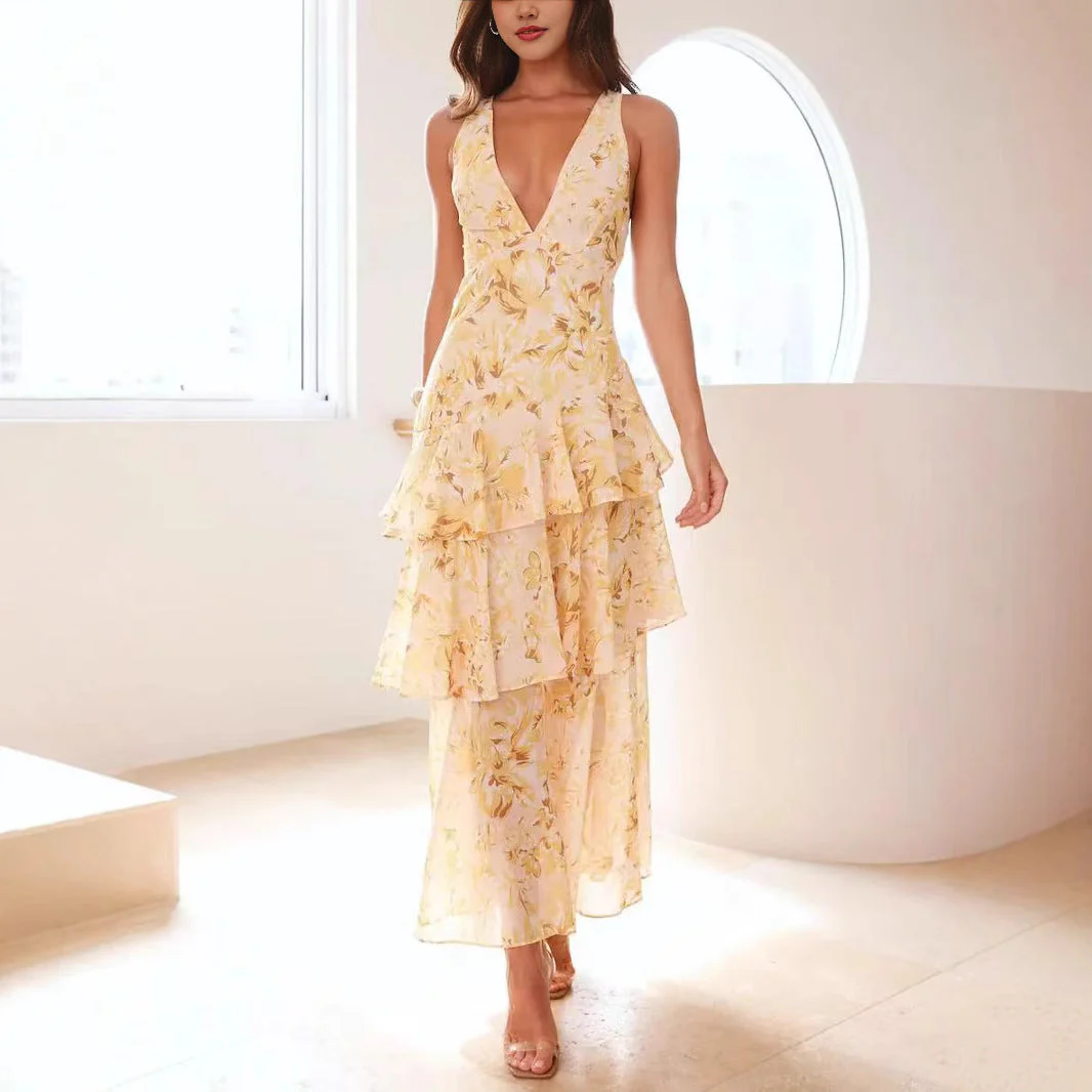 Le décolleté plongeant et l’absence de manches ajoutent une touche de glamour, idéale pour les journées ensoleillées ou les événements chics. Grâce à sa conception en polyester de haute qualité, cette robe est facile d’entretien et conserve son éclat lavage après lavage. Associez-la à des sandales à talons pour un look sophistiqué ou à des accessoires discrets pour la porter au quotidien.