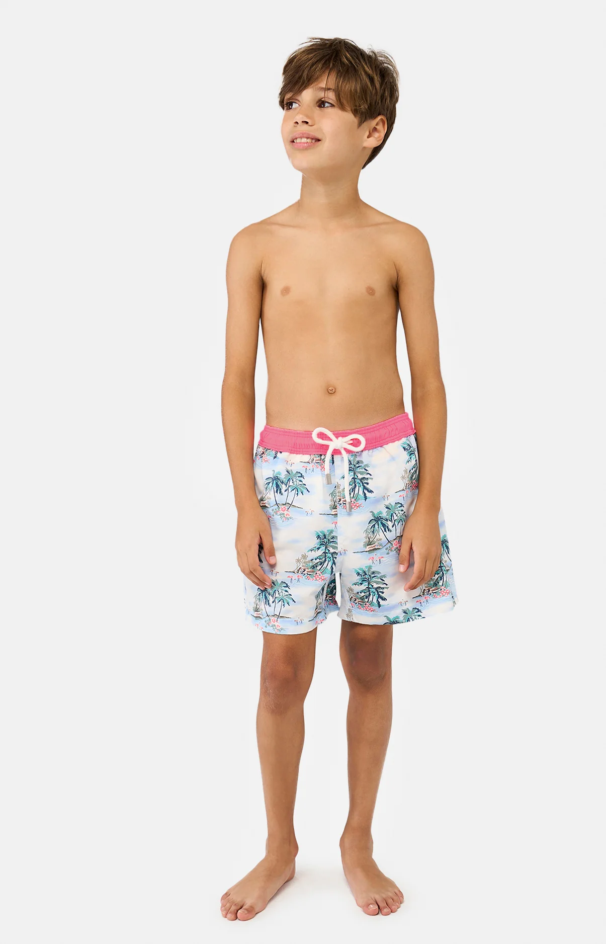 – Short de bain enfant ARTHUR Plage – 100% polyester recyclé – Matière ultra légère, séchage rapide – Filet intérieur – Ceinture élastiquée et cordons contrastés avec embouts gravés ARTHUR– 2 poches côtés doublées – 1 poche dos fermeture velcro – Confectionné dans nos ateliers partenaires au Maroc