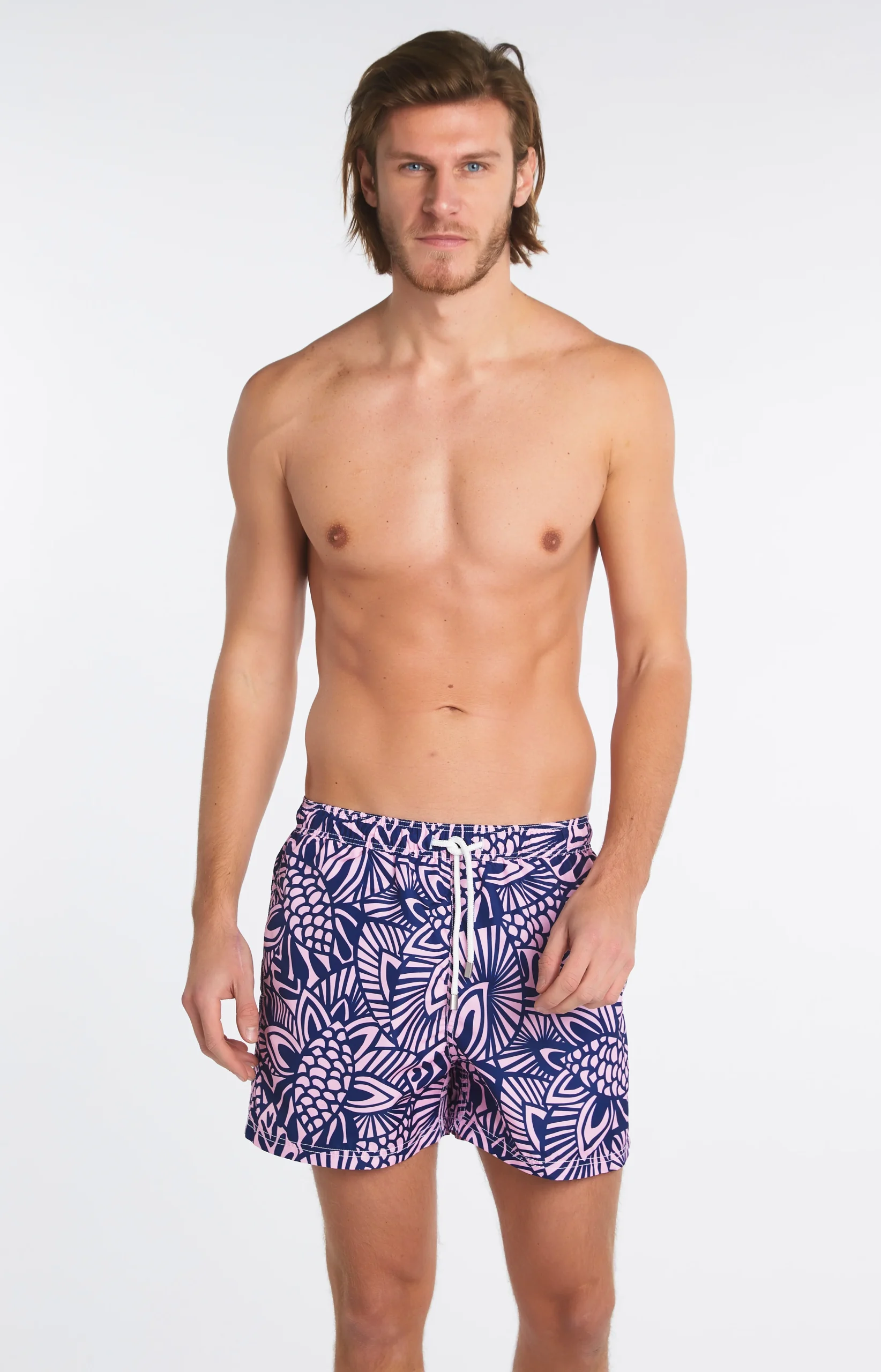 Ses couleurs rappellent les reflets rosés du coucher de soleil apaisant l’horizon tous les soirs d’été, et ses motifs originaux réhaussent ce short de bain aux contours artistiques. Pour compléter le look inimitable de ce modèle, le confort est de la partie : son slip intérieur, sa ceinture élastiquée et ses trois poches font de lui un compagnon de choix pour passer des vacances inoubliables. En achetant ce maillot de bain, vous faites aussi un geste pour l’environnement : le modèle, qui fait partie de la ligne « Une bouteille à la mer », est fabriqué à partir de bouteilles de plastique recyclées, et son emballage entièrement biodégradable.