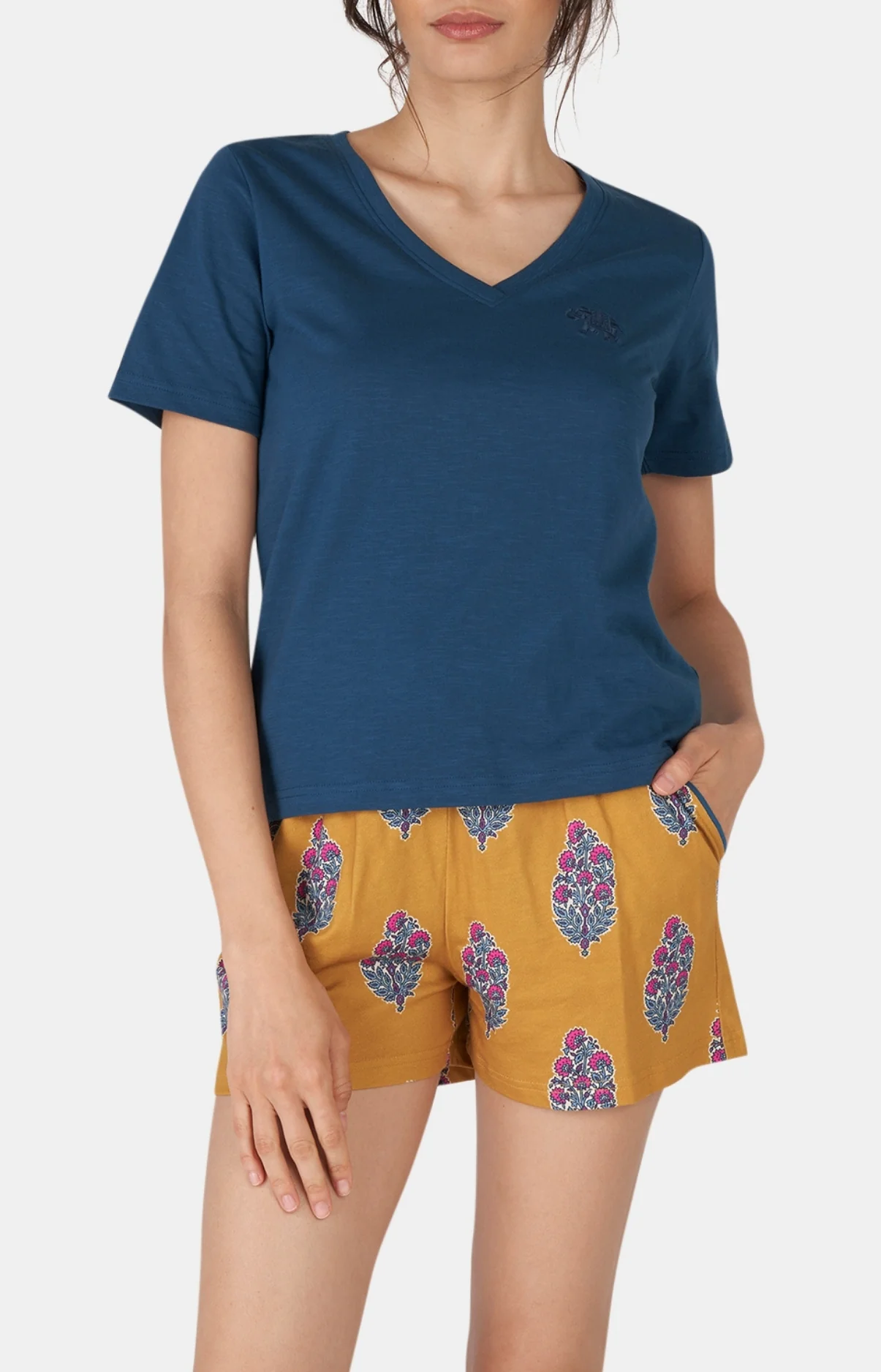 – Bas de pyjama femme – 100% coton issu de l’agriculture biologique – Short avec ceinture élastiquée et cordon de serrage – 2 poches côtes passepoilées – Longueur environ 33 cm – Motif exclusif créé à Paris – Confectionné dans nos ateliers partenaires en Turquie