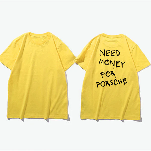 Affichez votre sens de l’humour et votre amour pour les belles voitures avec ce t-shirt homme à message « NEED MONEY FOR PORSCHE » imprimé au dos. Ce t-shirt au style streetwear décontracté offre un look tendance et original, parfait pour les amateurs de mode urbaine et d’autodérision. Sa coupe classique et ses manches courtes garantissent un confort optimal au quotidien.