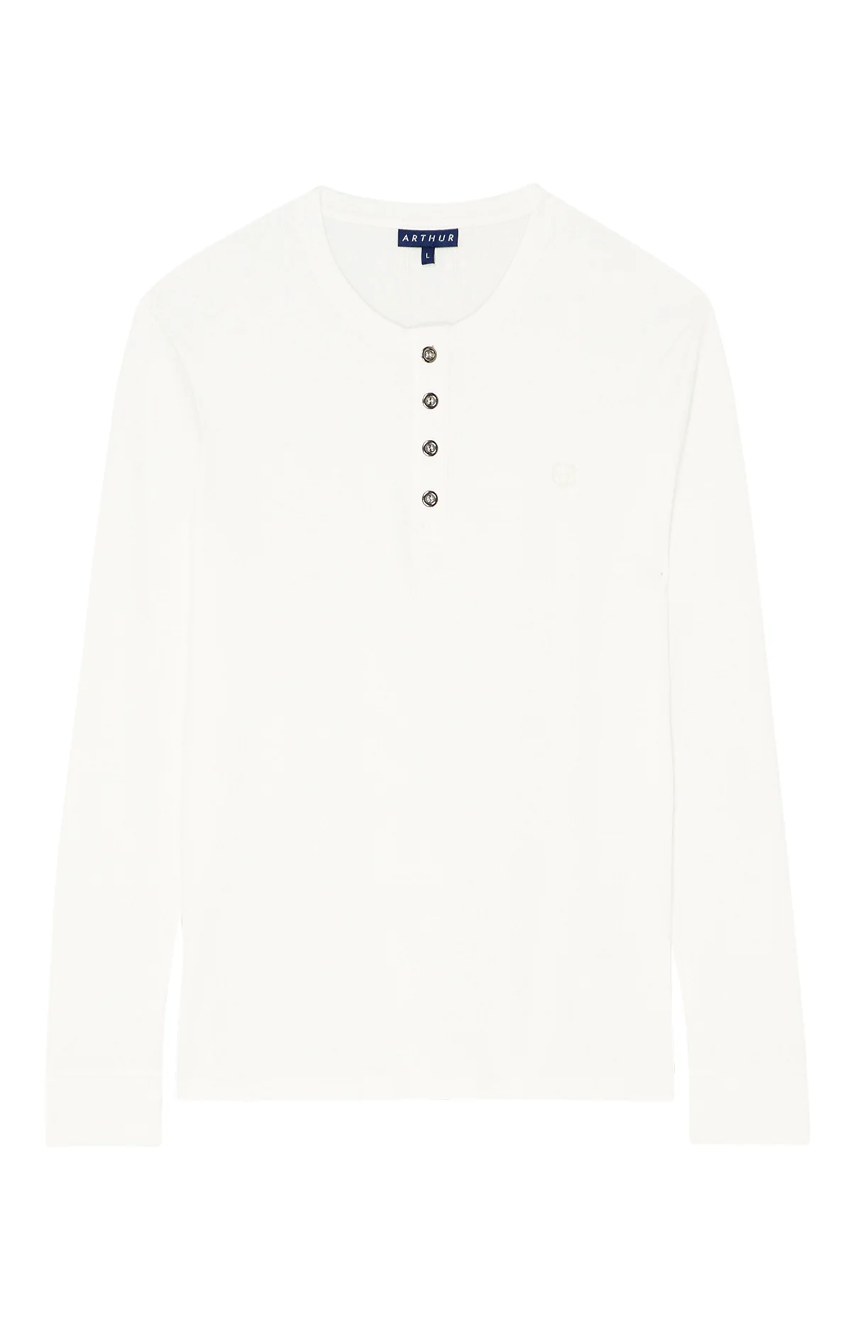 – Tee-shirt manches longues, col tunisien avec patte boutonnage 4 boutons