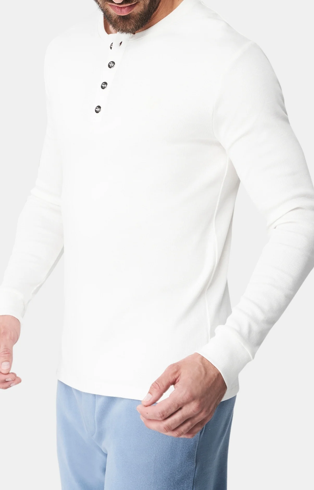 Le tee-shirt en coton côtelé fluide et chaud, à porter de jour comme de nuit ! – Tee-shirt ou haut de pyjama homme en maille côtelée – Mélange de modal et de coton – Tee-shirt manches longues, col tunisien avec patte boutonnage 4 boutons – Confectionné dans nos ateliers partenaires en Turquie