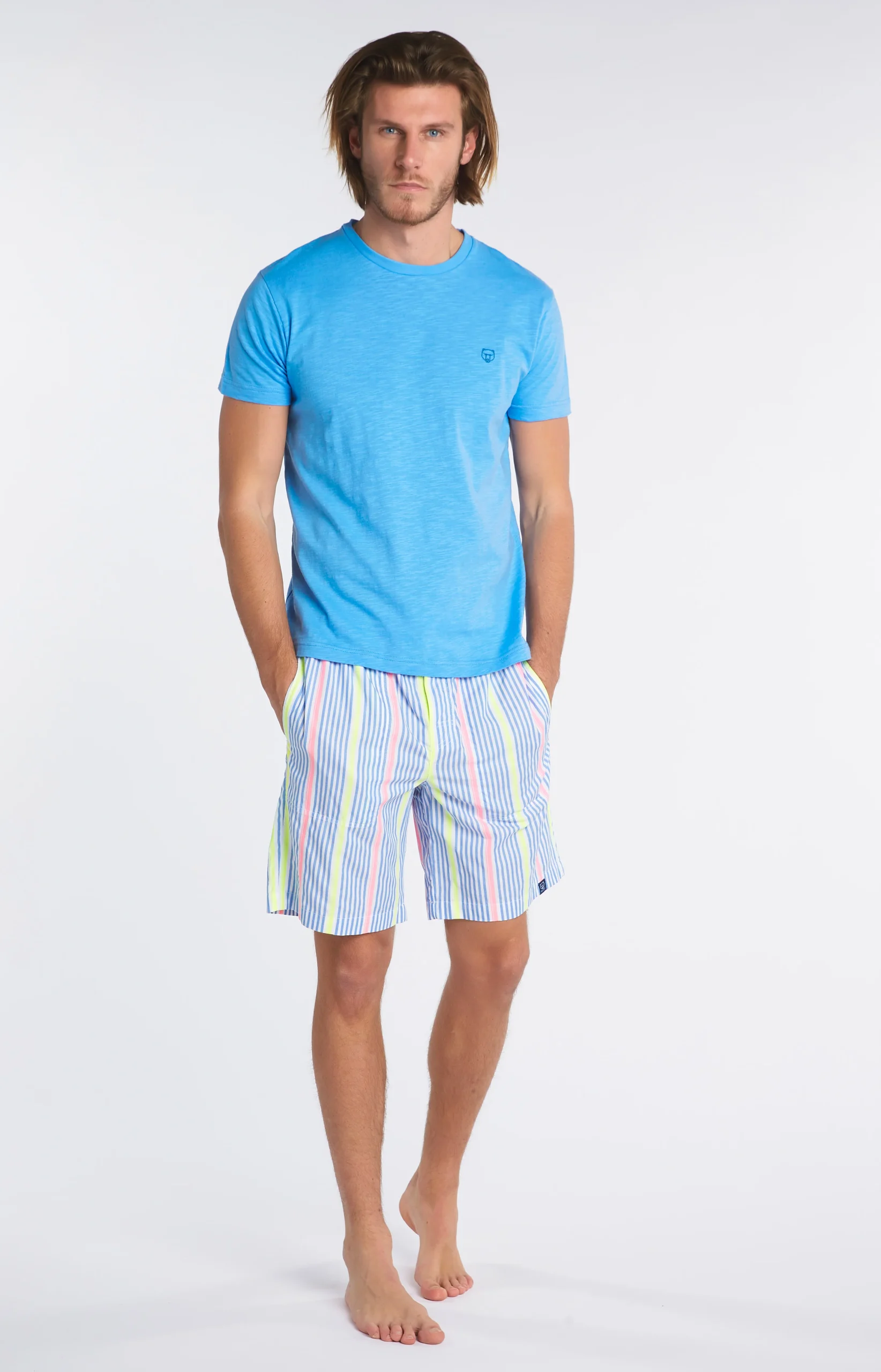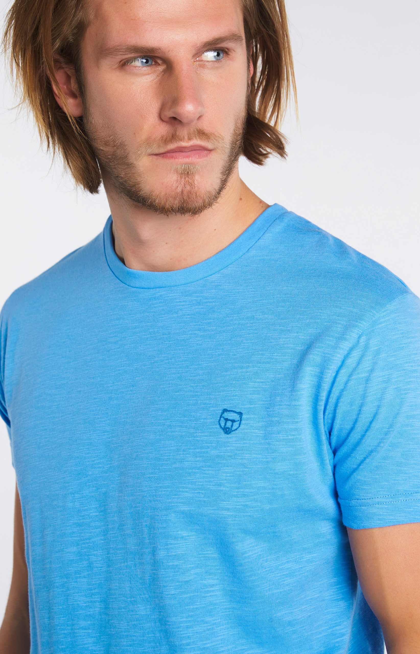 Ce confortable tee-shirt homme uni azur 100% coton issu de l’agriculture biologique s’adaptera parfaitement avec un bas Arthur de votre choix.
