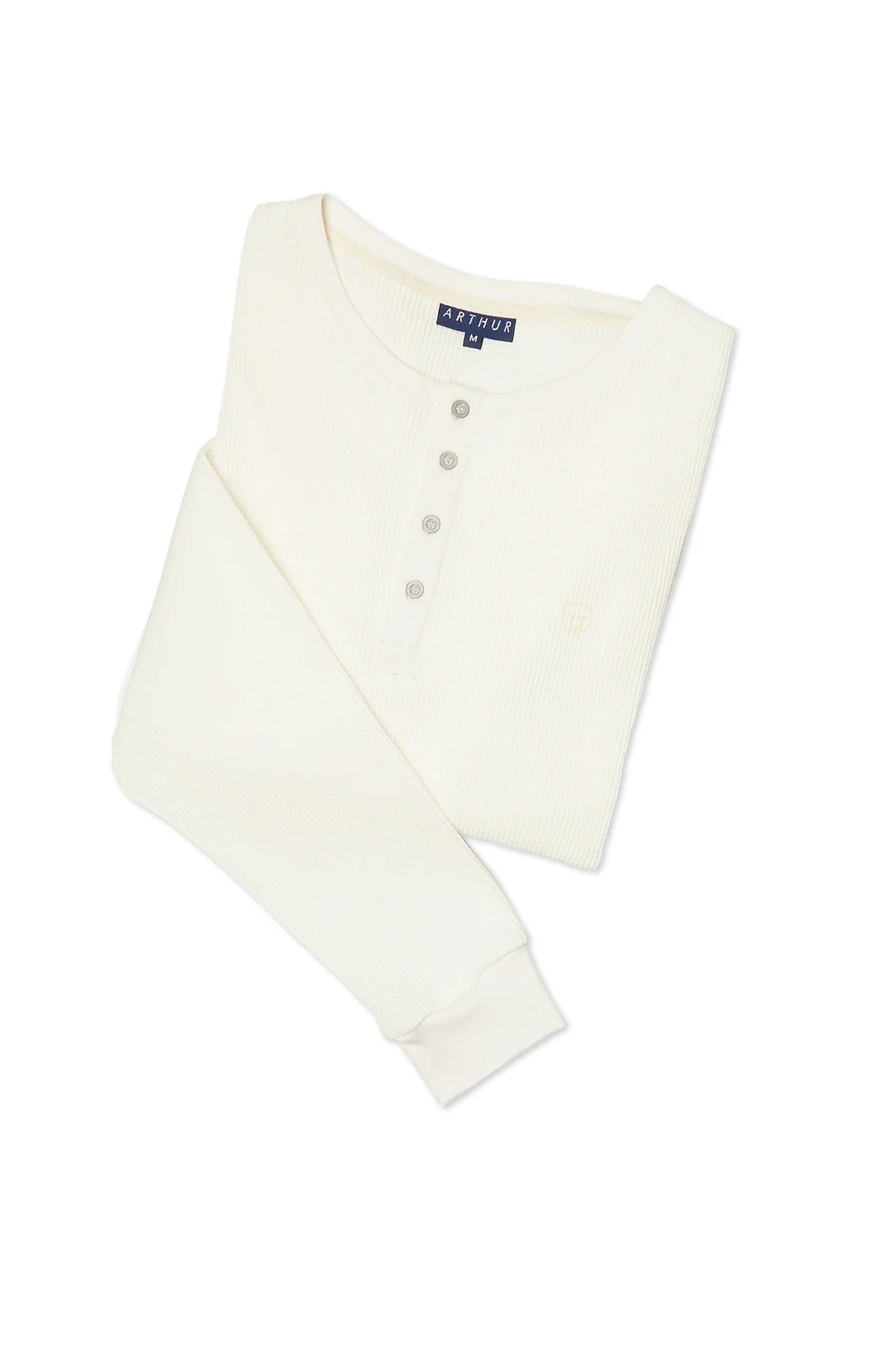 Avec ses manches longues et ses finitions soignées, ce t-shirt uni écru 100% coton s’adaptera parfaitement avec un bas Arthur de votre choix.