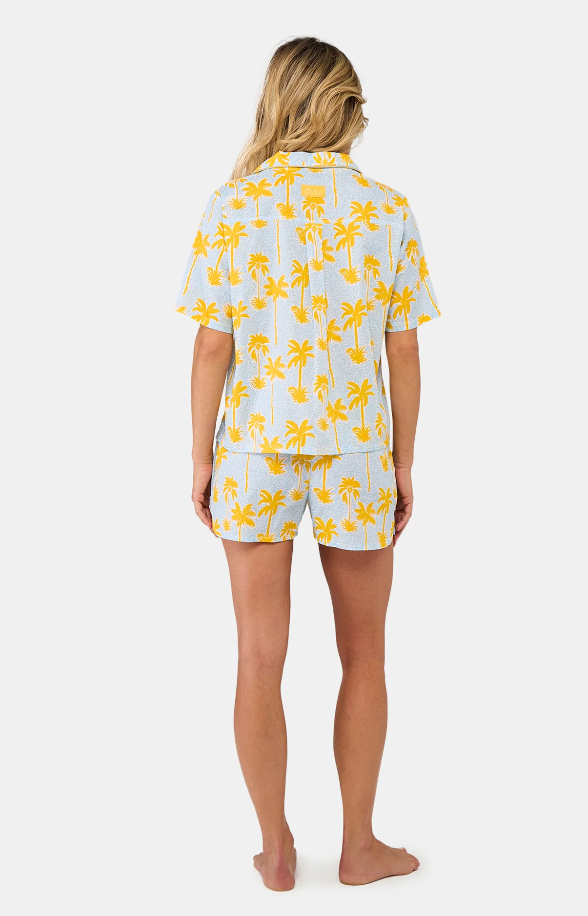 – Tenue d’été ou ensemble de Pyjama Femme – à porter de jour comme de nuit, à la plage comme à la maison – 100% coton issu de l’agriculture biologique – Chemise boutonnée manches courtes, col chemise – Petite poche poitrine et finitions passepoilés dorées – Short élastiqué avec cordon de serrage – Motif exclusif […]