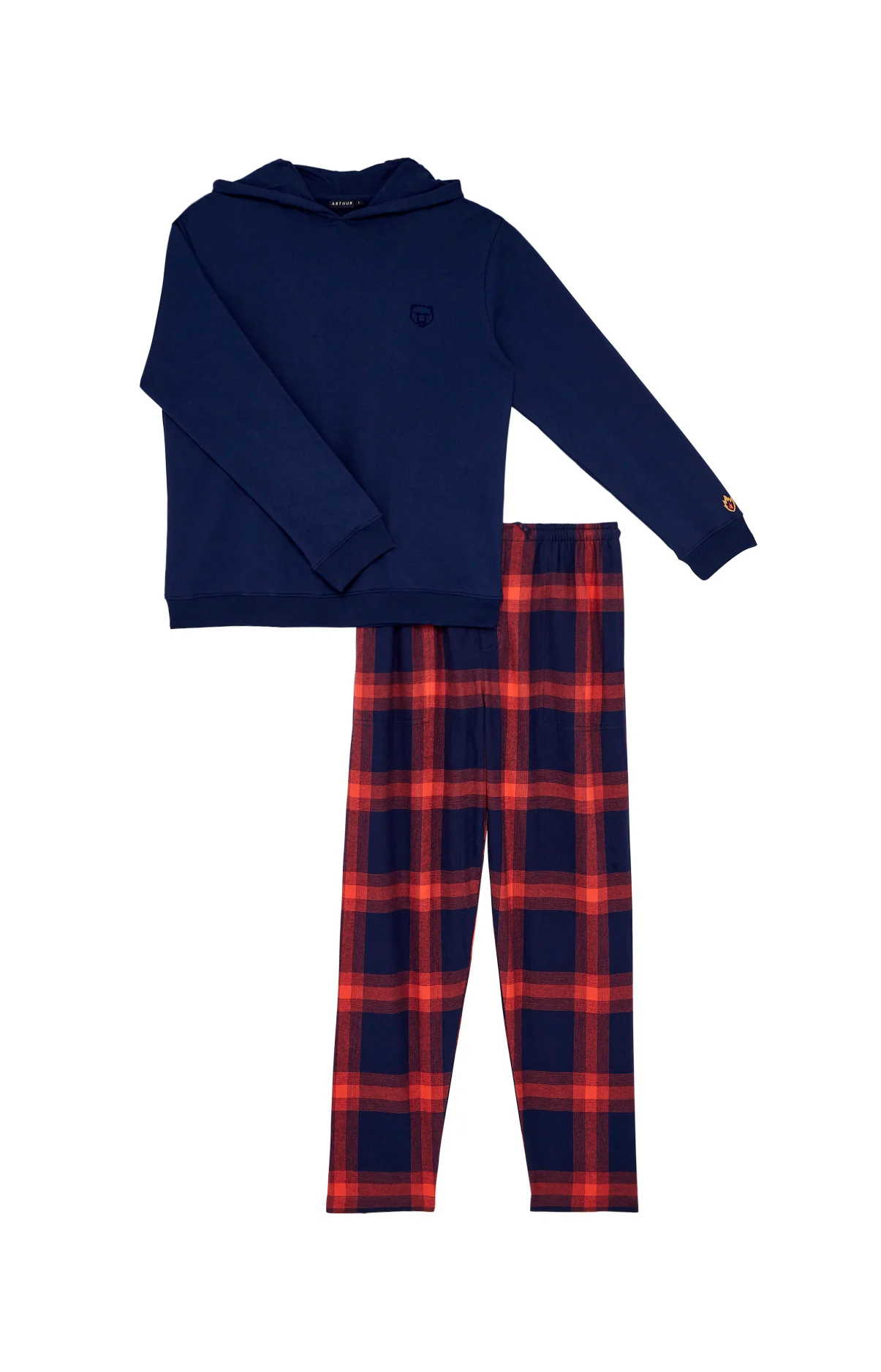 – Tenue d’intérieur Homme – 100% coton issu de l’agriculture biologique – Sweat à capuche avec broderie flamme sur le poignet gauche – Pantalon avec ceinture élastiquée, cordon de serrage et 2 poches côtés – Motif exclusif créé à Paris – Confectionné dans nos ateliers partenaires en Inde