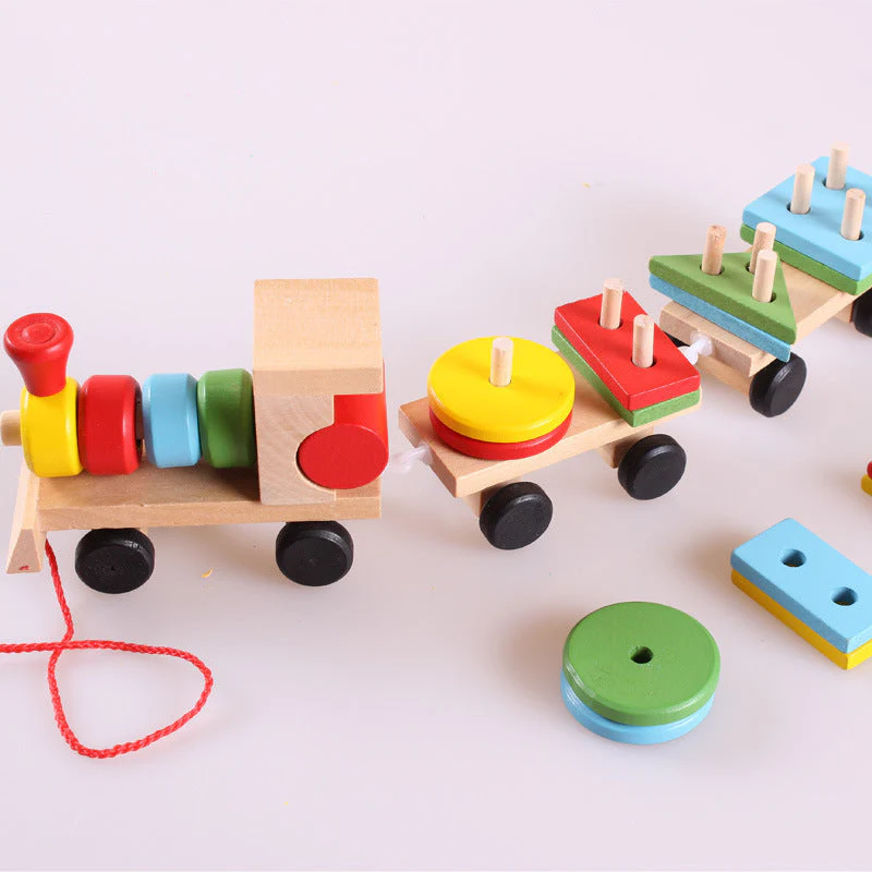Train jouet éducatif en bois pour enfants – Jeu de formes empilables – Dès 1 an