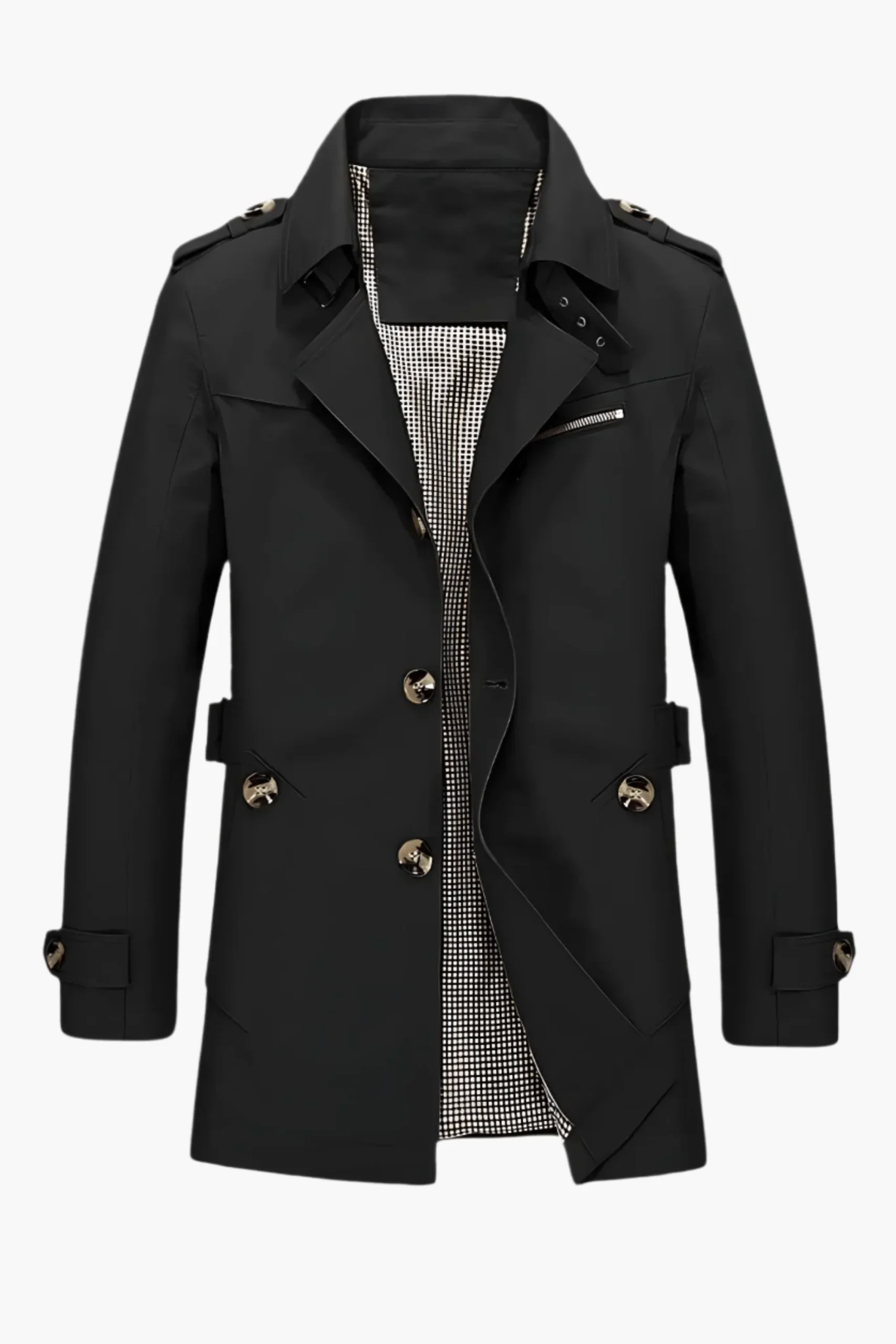 Idéal pour les journées fraîches en ville, ce trench-coat vous protège du vent tout en offrant un confort optimal. Sa coupe ajustée met en valeur la silhouette, tandis que la doublure intérieure à motif ajoute une note de style discrète.