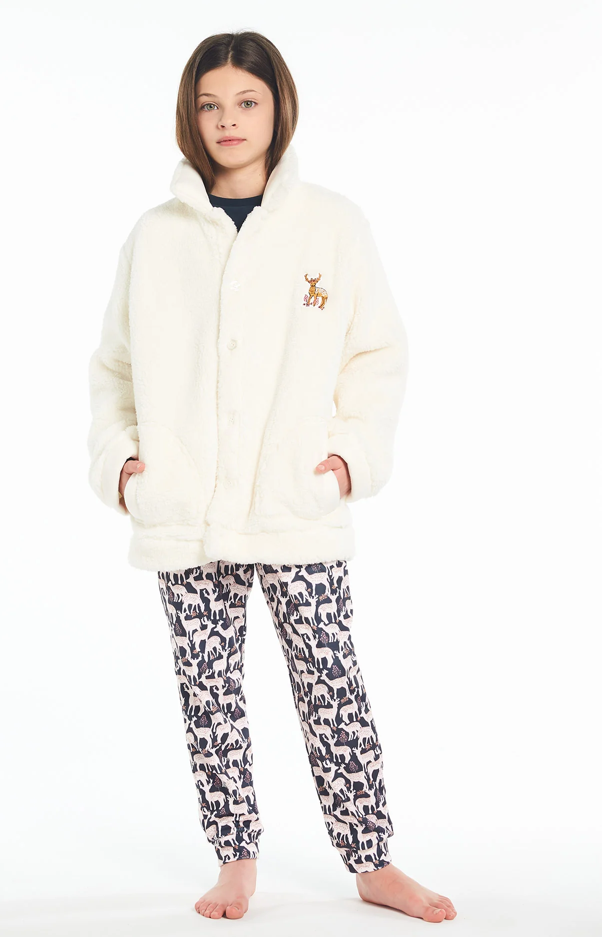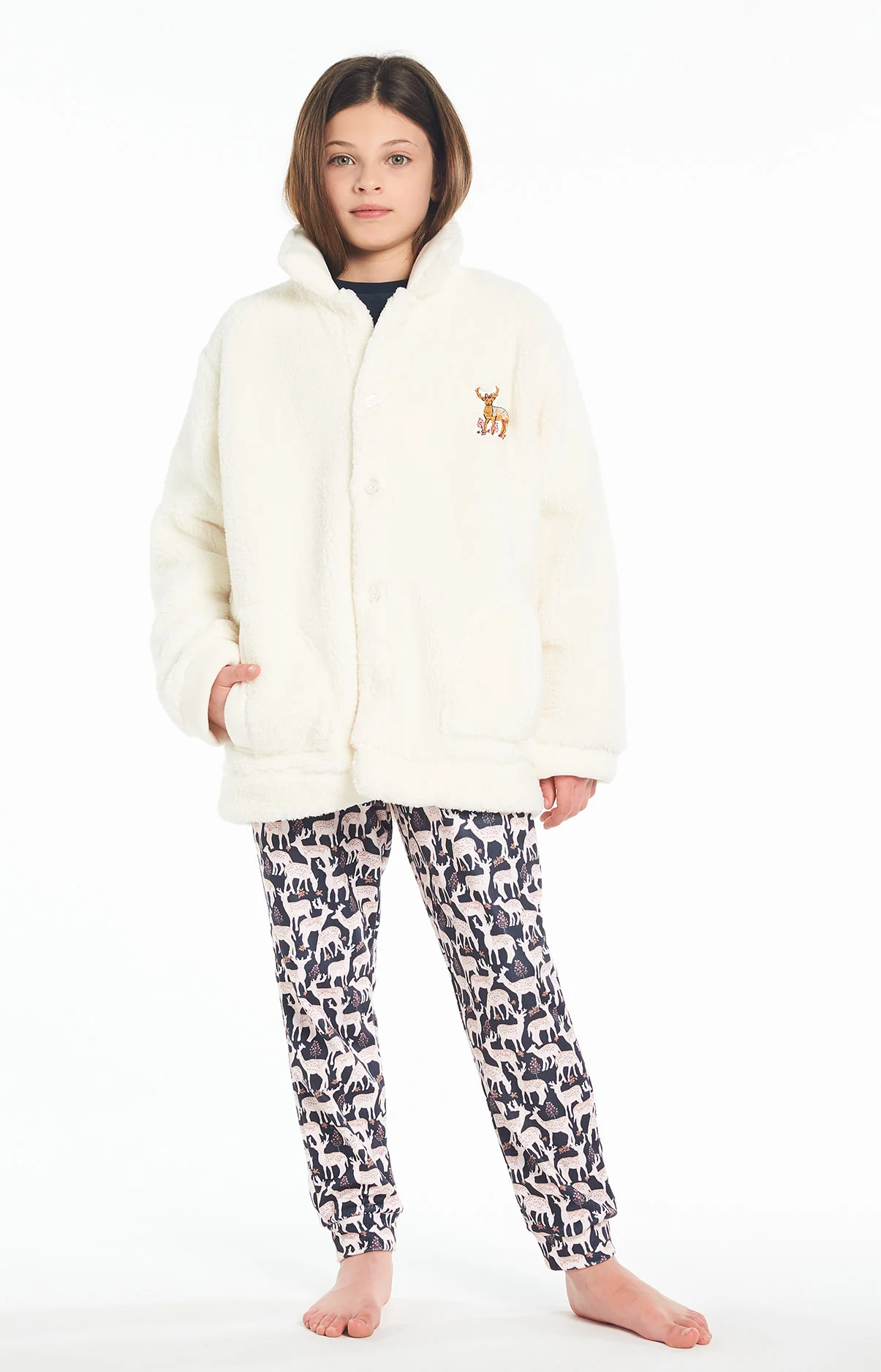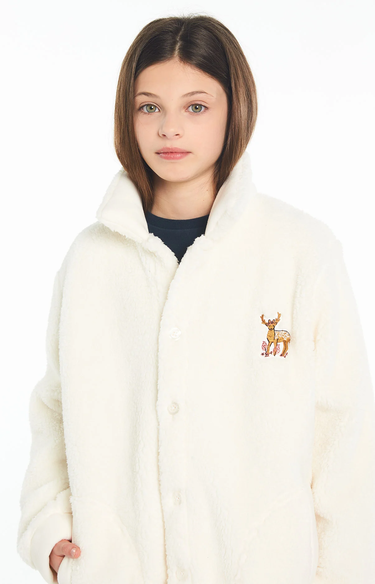 Pour que votre fille reste au chaud tout l’hiver tout en portant le style qu’elle aime tant, offrez-lui l’opportunité de rendre ses rêves réalité. Cette veste ivoire 100% polyester aux motifs subtils fera de ses vacances d’hiver et ses soirées à la maison des moments remplis de douceur !